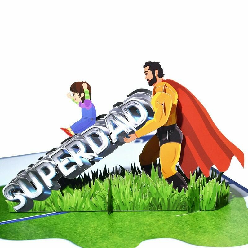 Biglietto 3D Pop Up Scivolo da gioco per superpapà Design divertente Regalo creativo per la festa del papà