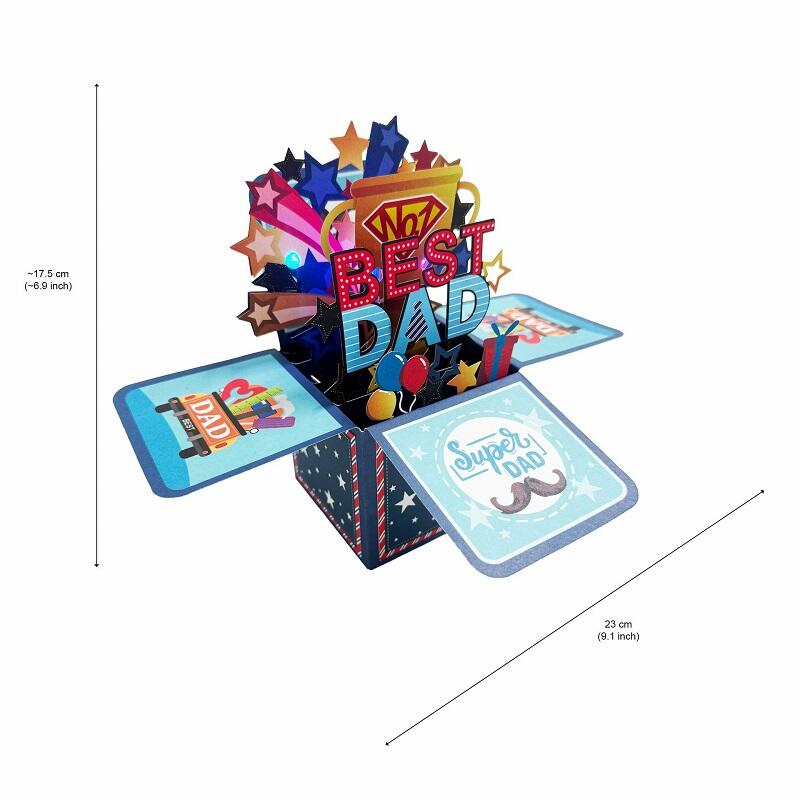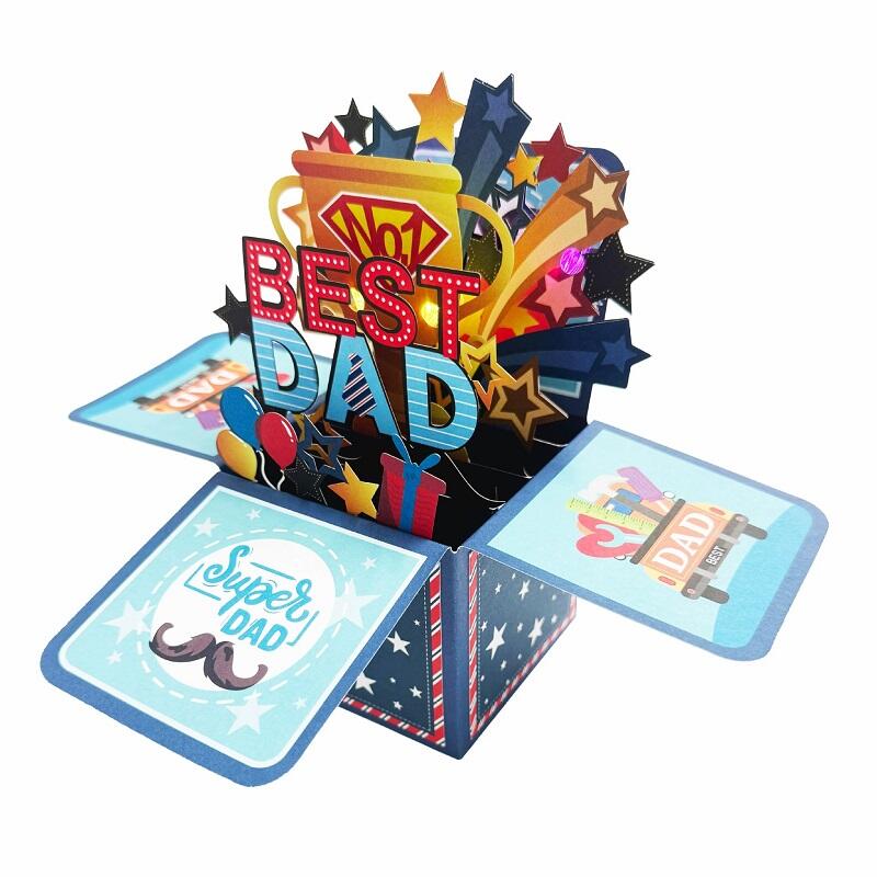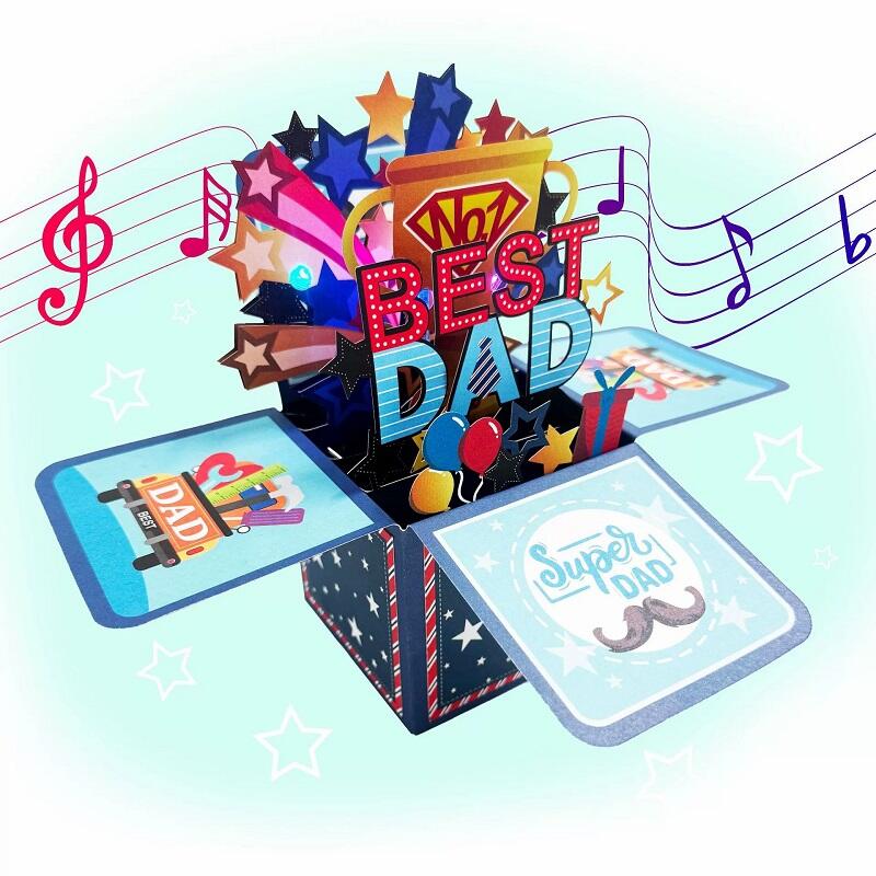Biglietto 3D Pop Up Scatola musicale Miglior papà Trophy Design Regalo attraente per la festa del papà