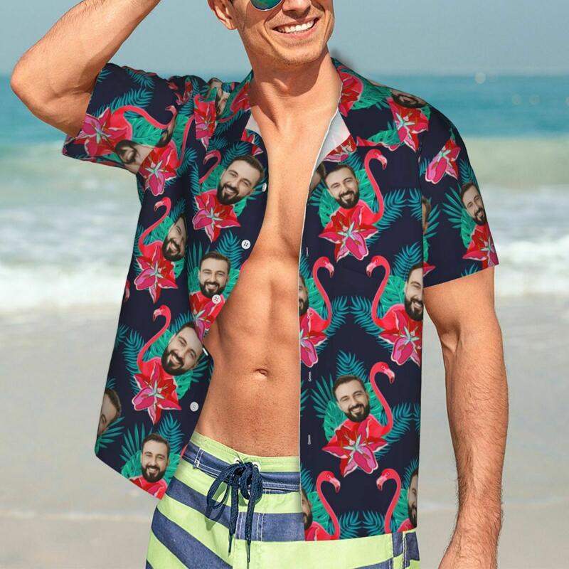 Camicie hawaiane personalizzate Camicia da spiaggia colorata con fenicottero Aloha per uomo