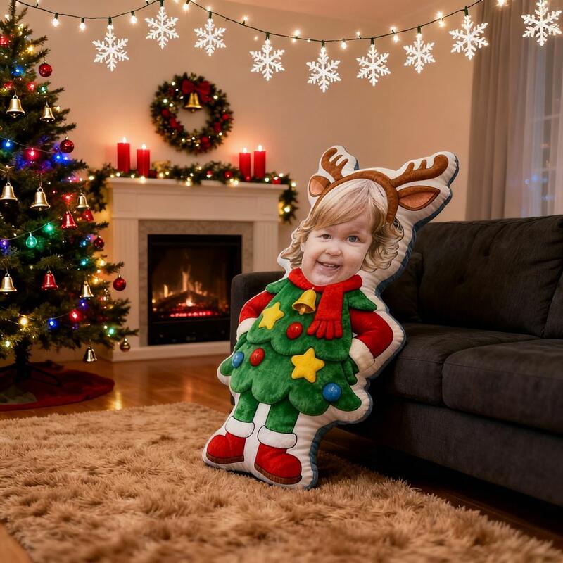 Cuscino personalizzato con foto cuscino con ritratto di cartone animato abiti da albero di Natale decorazioni per la casa per bambini