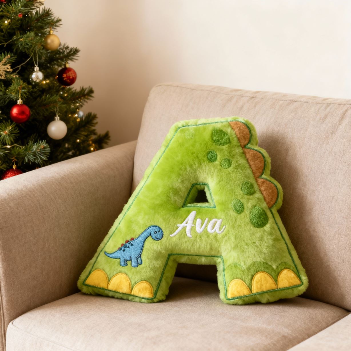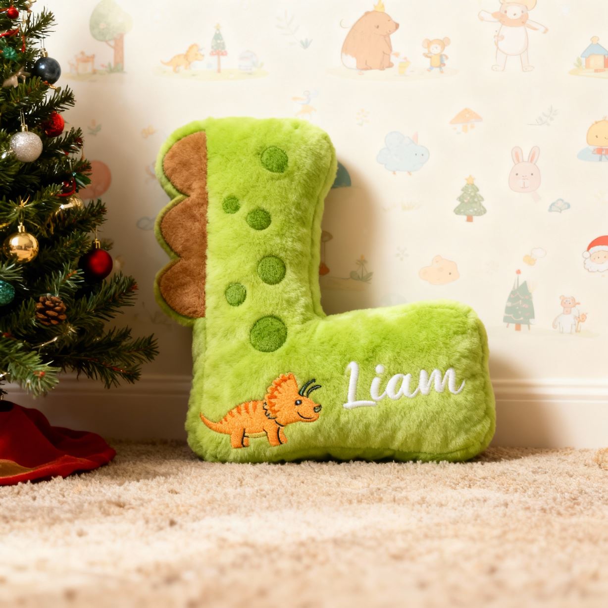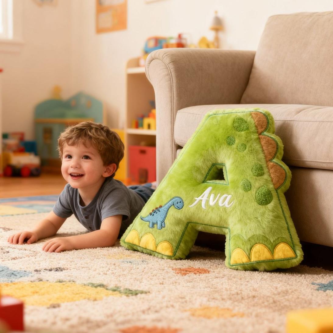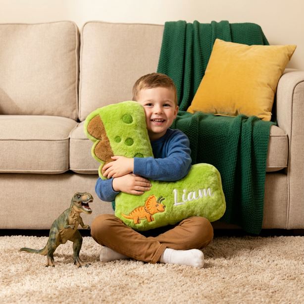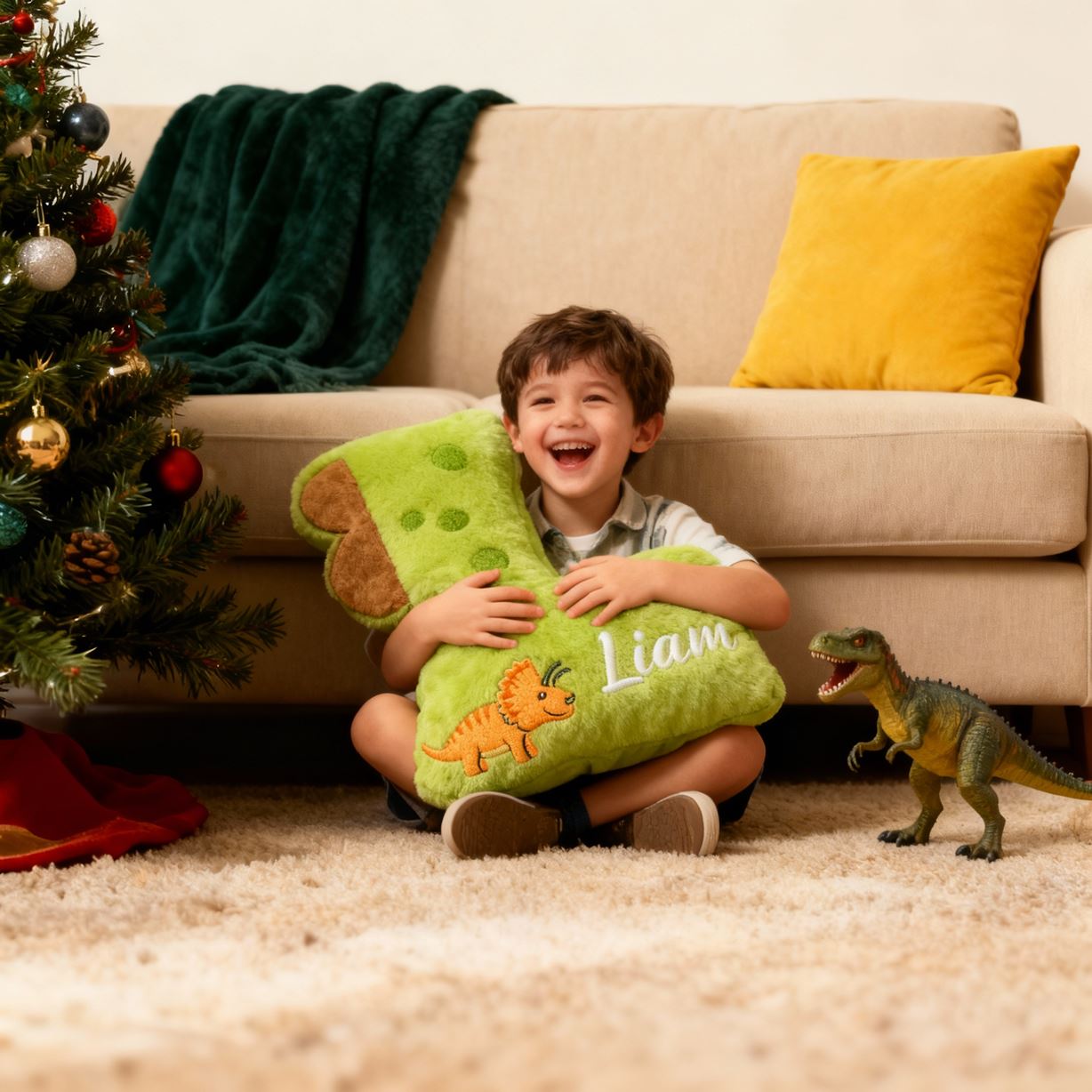 Customized Name Pillow Green Dinosaur-Themed Cartoon Fabric Decoration for Kids