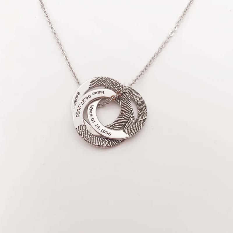 Collana Pendente Tre Cerchi Personalizzata con Impronte Digitale