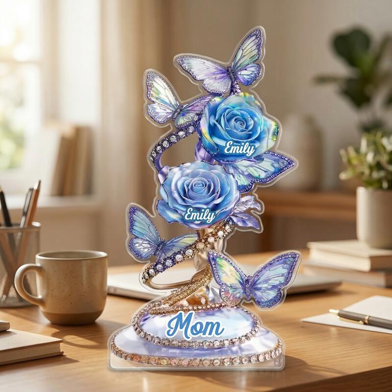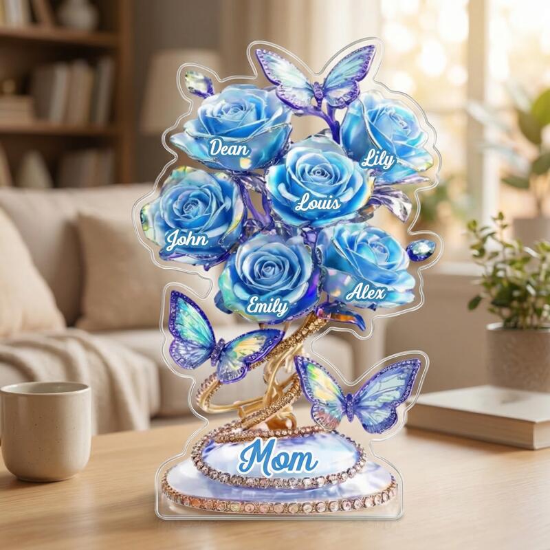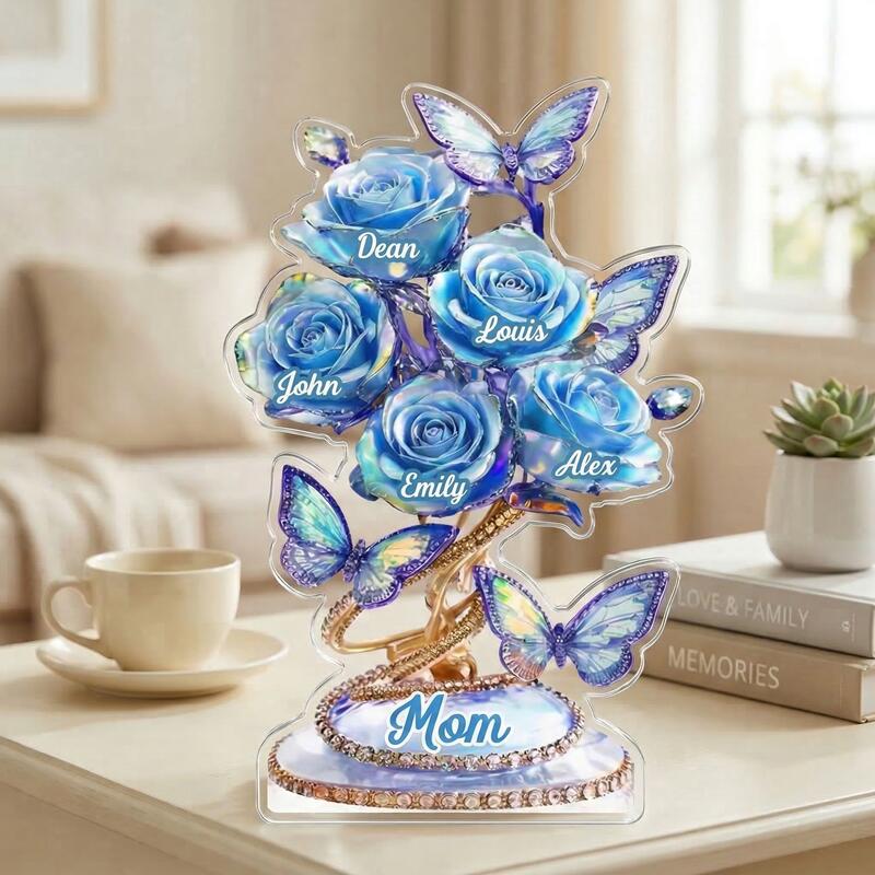 Placca personalizzata in blocchi acrilici Nomi personalizzati Bouquet rosa blu Regalo carino per la Festa della Mamma