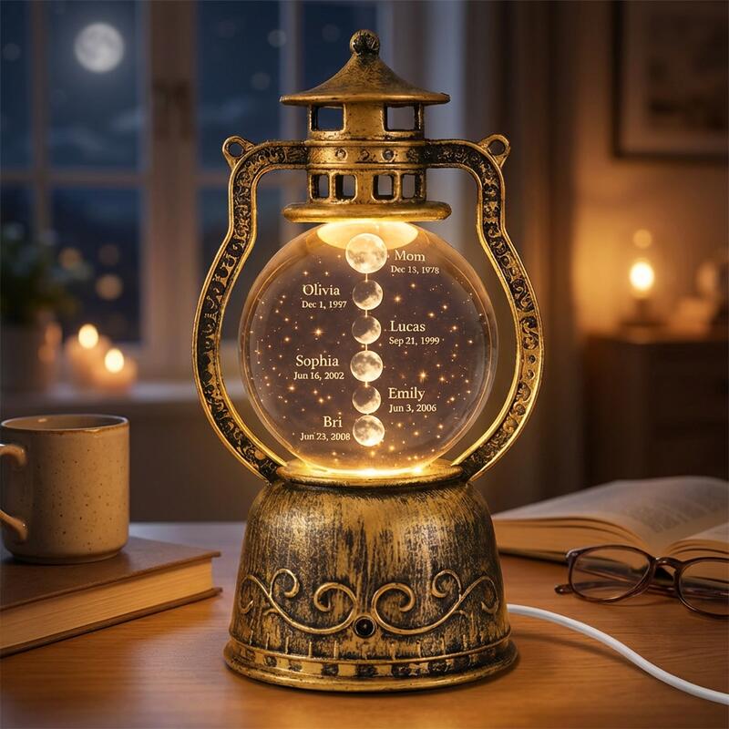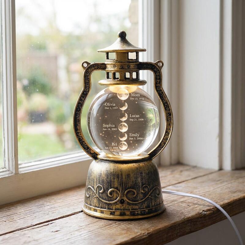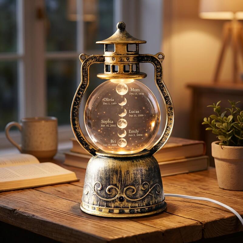 Lampada a sfera di cristallo rotante automatica personalizzataregalo di famiglia personalizzato con le fasi lunari per la mamma