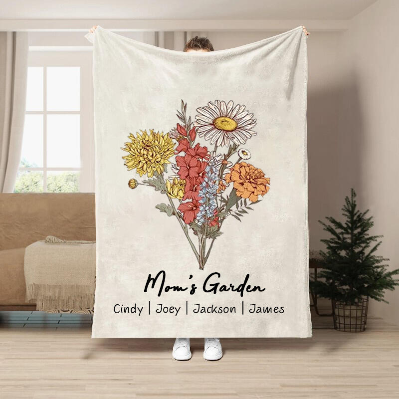 Coperta personalizzata con fiore di nascita con nome personalizzato e colore di sfondo Regalo in stile retrò per la mamma migliore