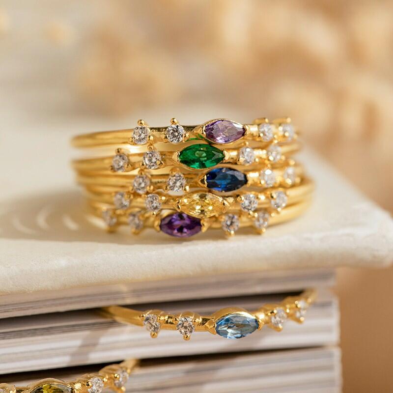 Anello personalizzato con pietra di nascita e diamanti Regalo prezioso per ragazza