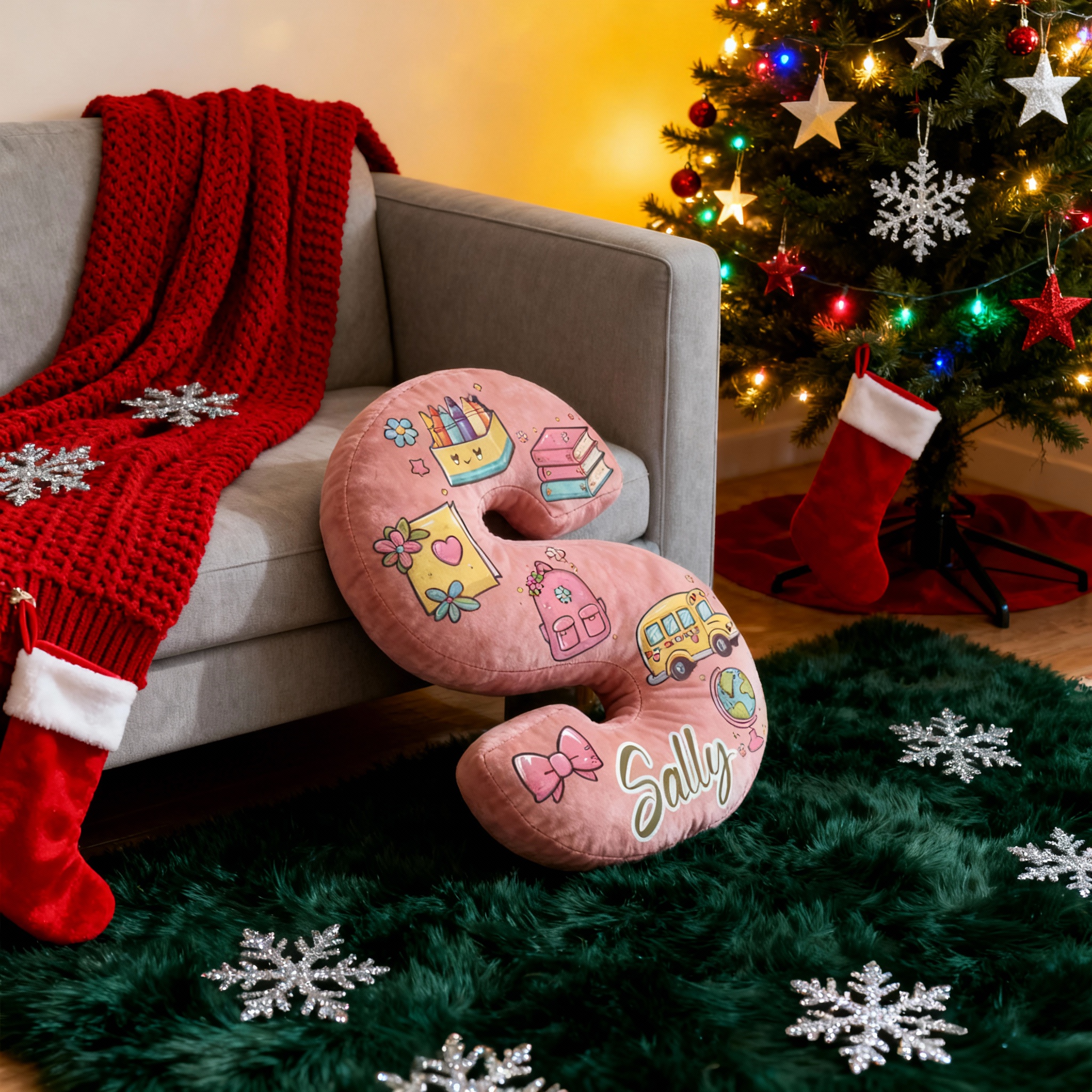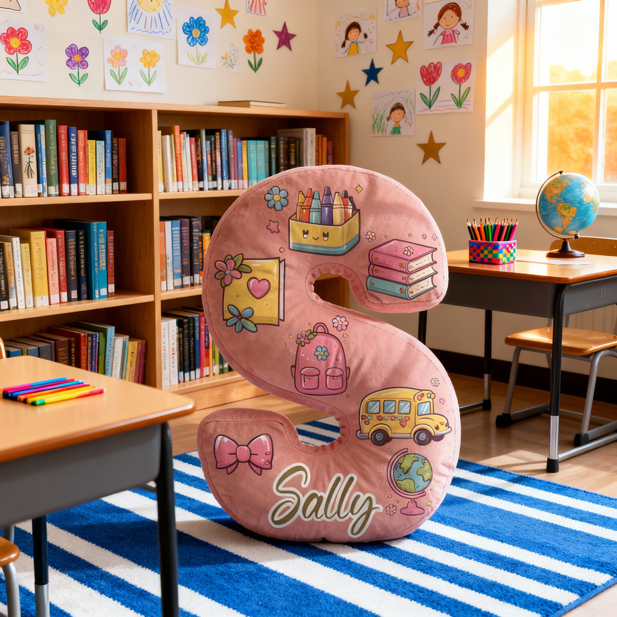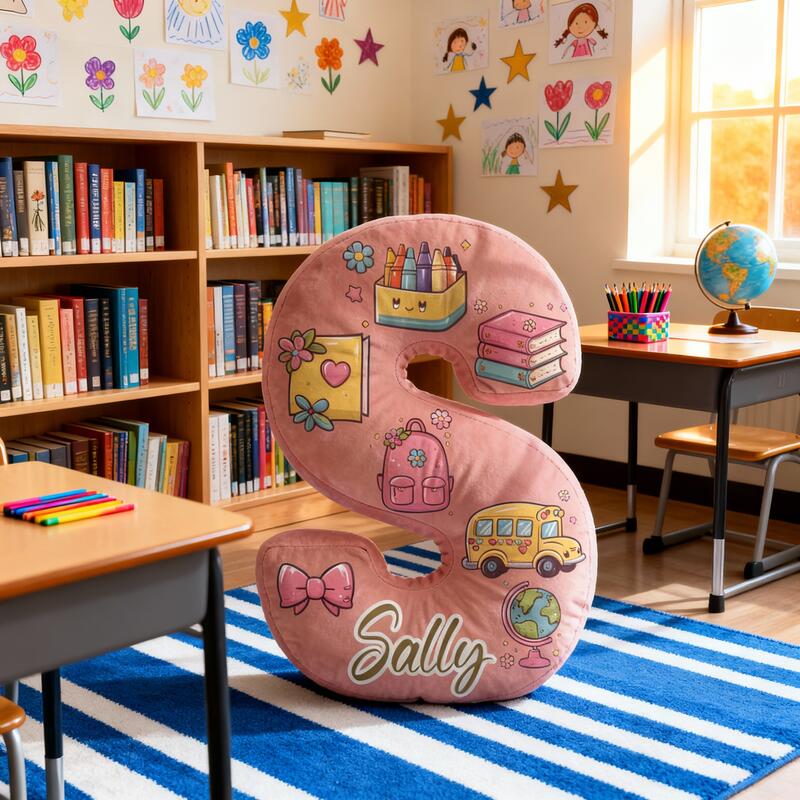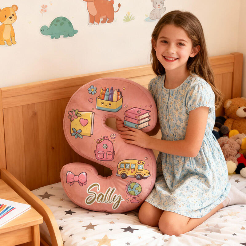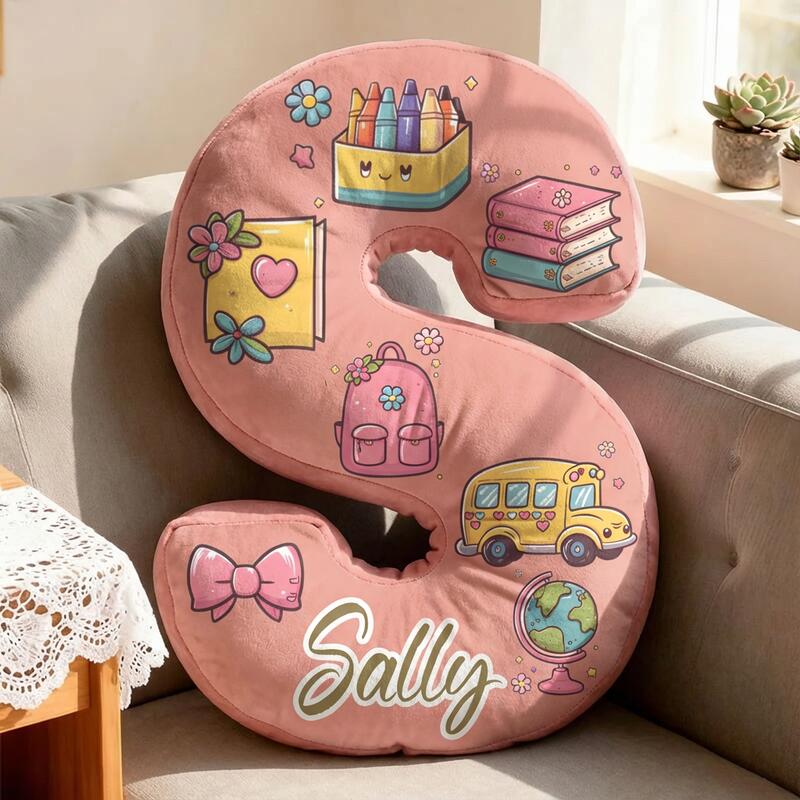 Zaini personalizzati con motivo scuolabus e cuscini con motivo a lettera regali speciali per bambini