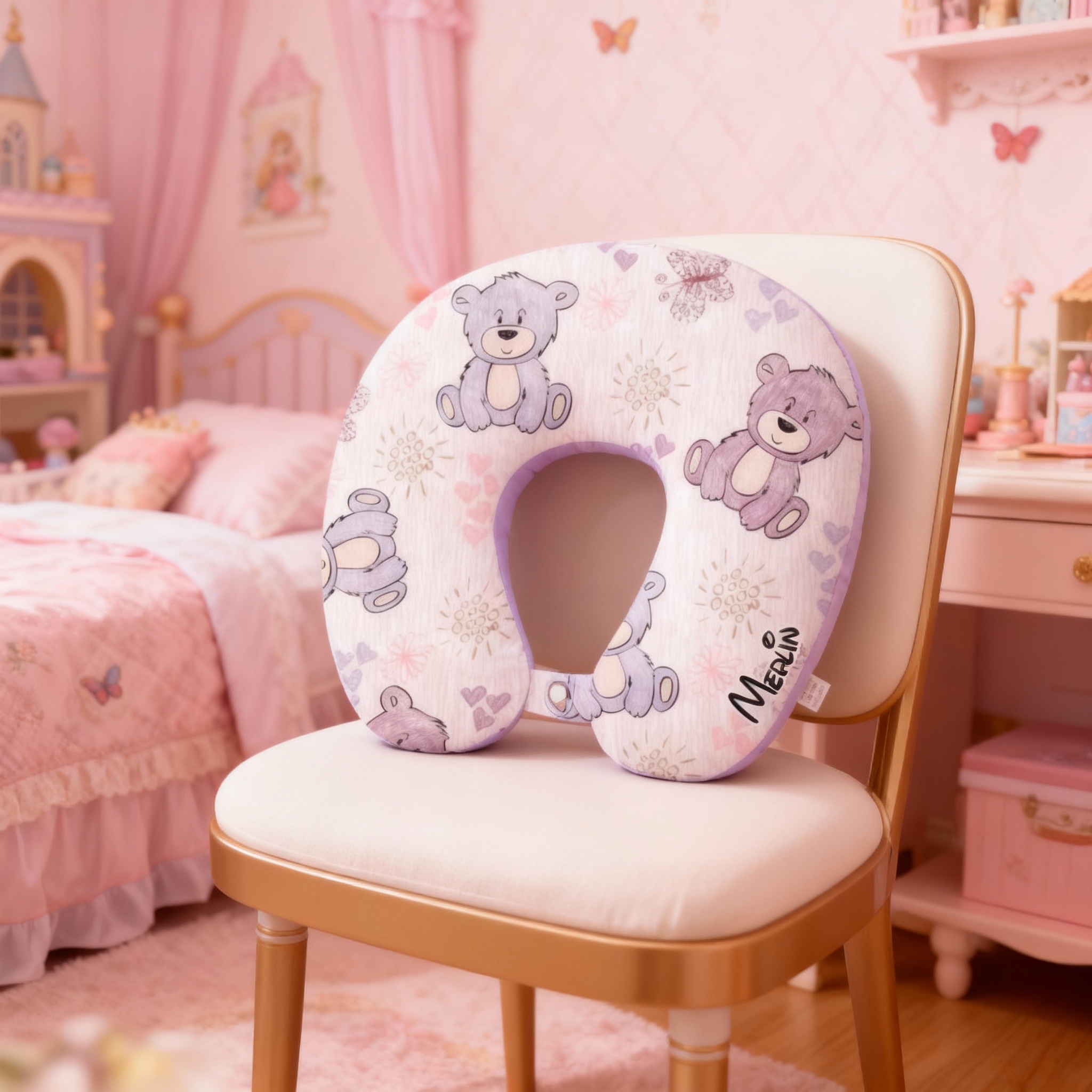 Cuscino personalizzato a forma di orso con nome personalizzabile Regalo da viaggio per bambine