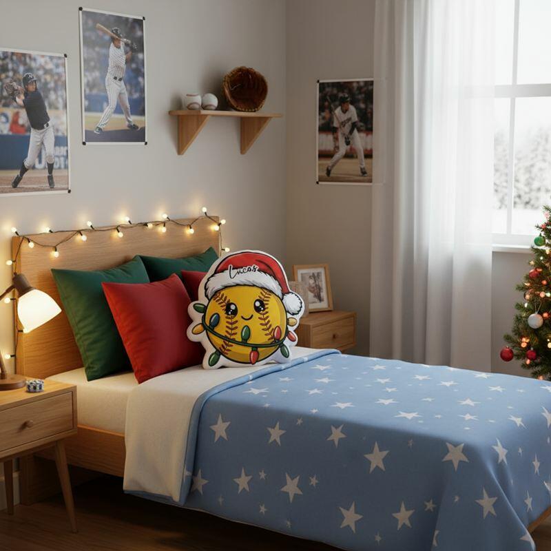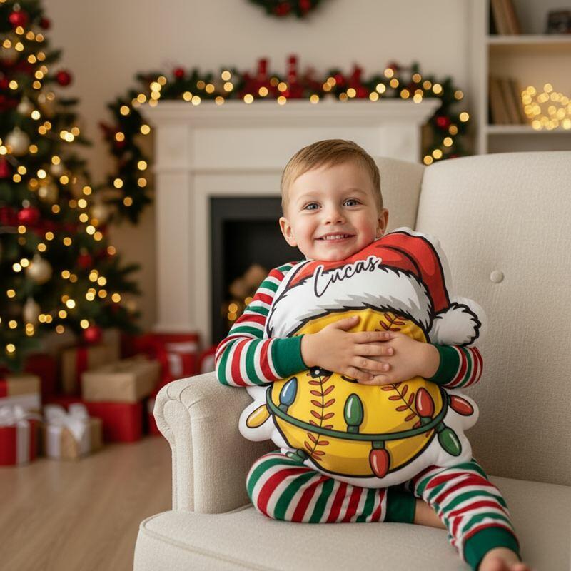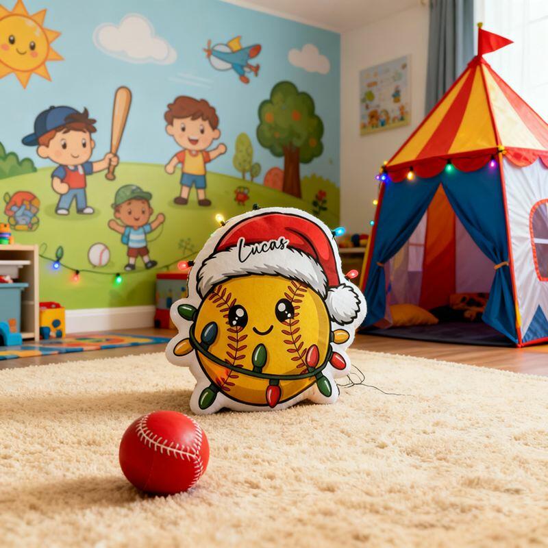 Cuscino personalizzato a forma di cartone animato Simpatico baseball con cappello da Babbo Natale Regalo per bambini amanti dello sport