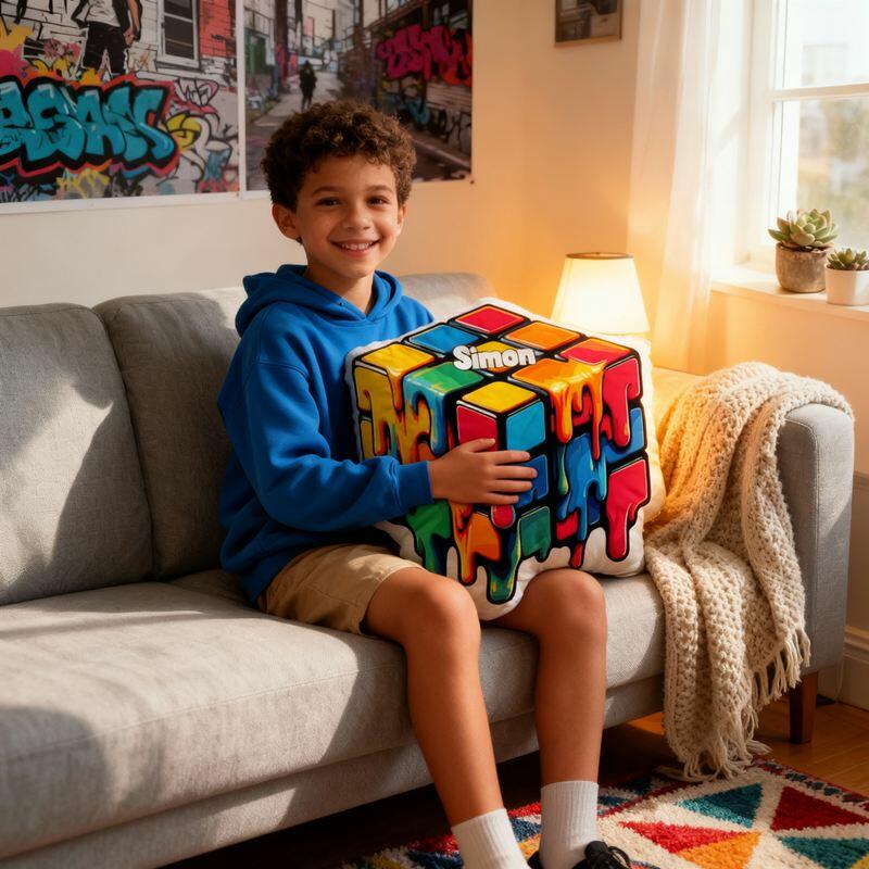 Cuscino personalizzato a forma di cartone animato design divertente con cubo di Rubik che si scioglie regalo per bambini