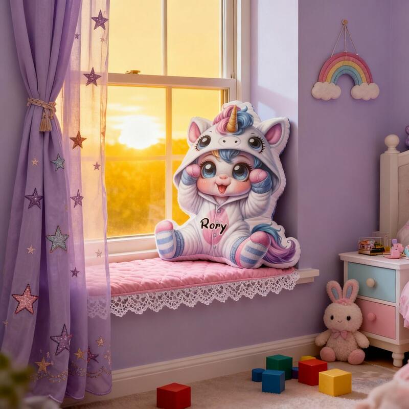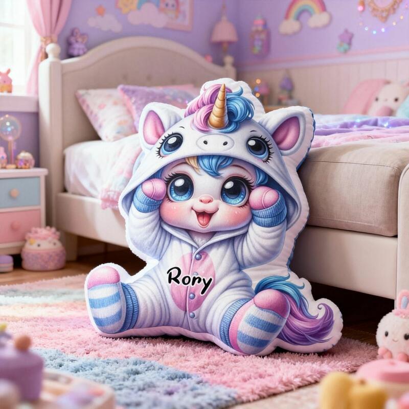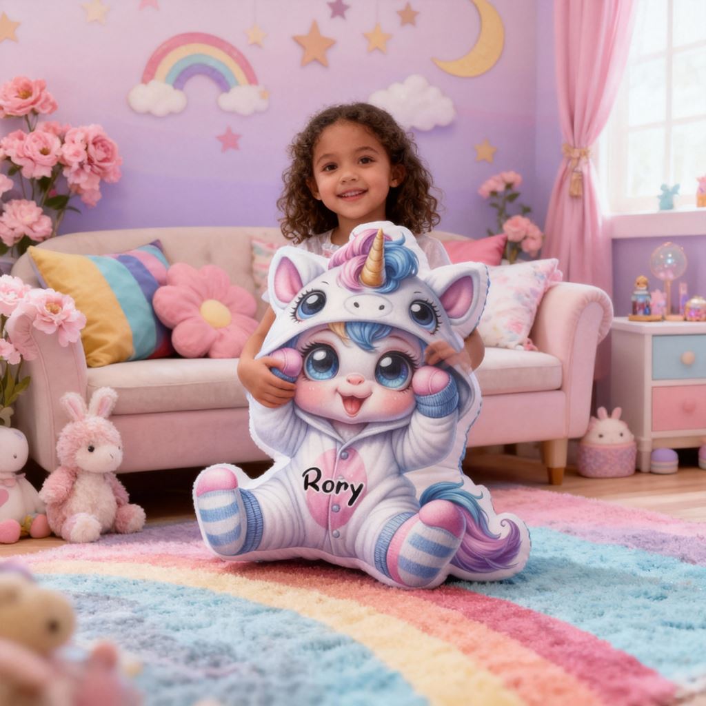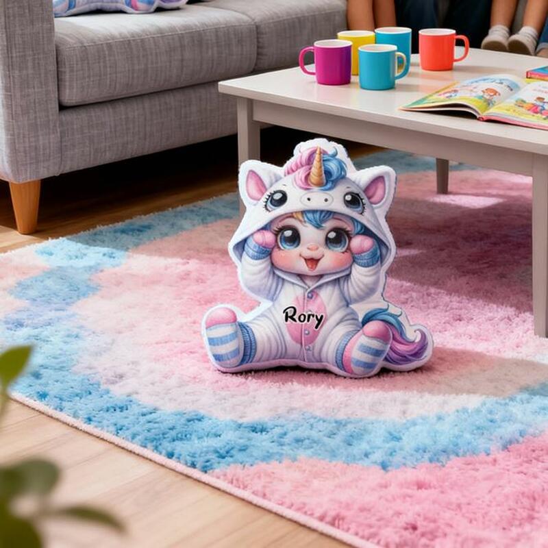 Cuscino personalizzato con unicorno dei cartoni animati morbido cuscino con tema pigiama regalo per bambini