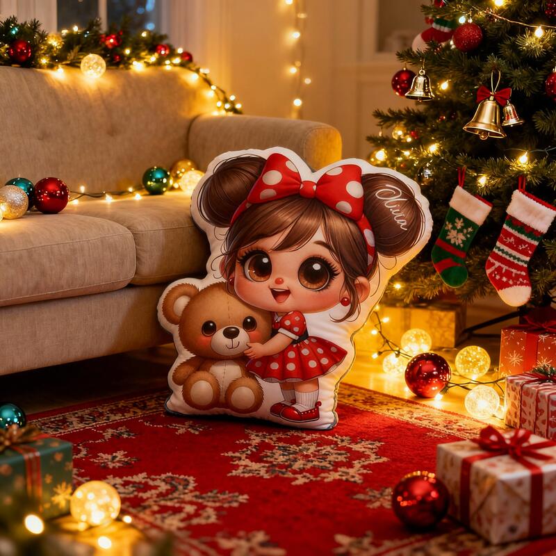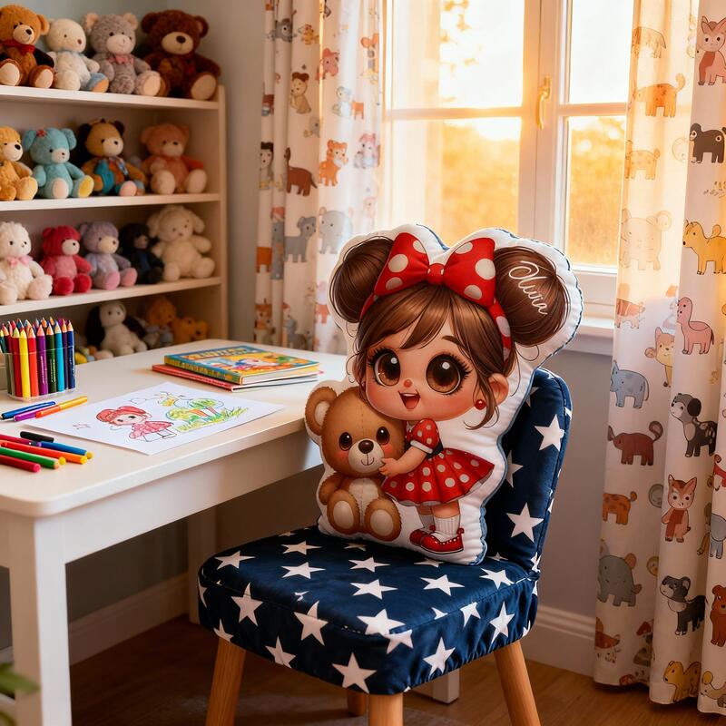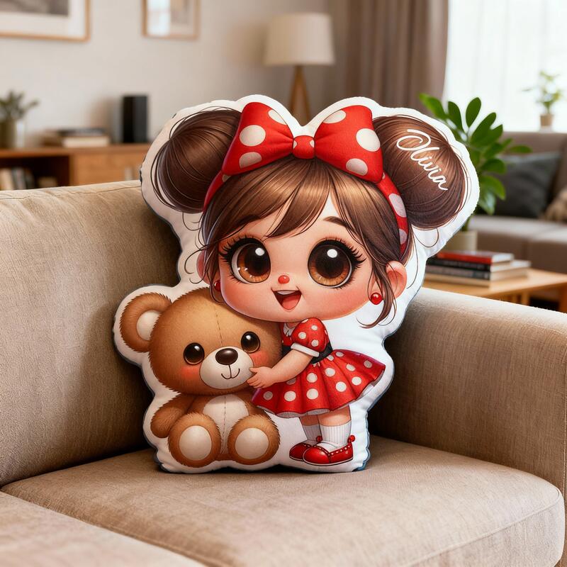 Cuscino personalizzato con ragazza carina Nome personalizzato Cuscino Cartoon Morbido regalo di compleanno per la figlia