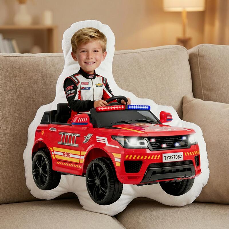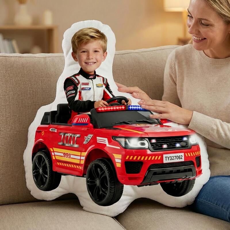 Cuscino personalizzato con ritratto e motivo auto rossa Regalo unico per bambini