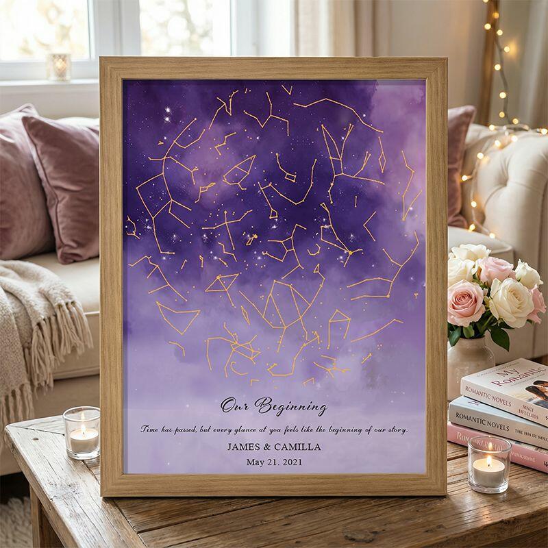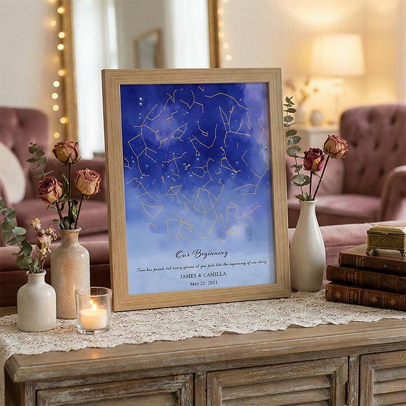 Cornice personalizzata con mappa stellare personalizzata della data speciale Design celeste dell'amore Regalo romantico per coppie