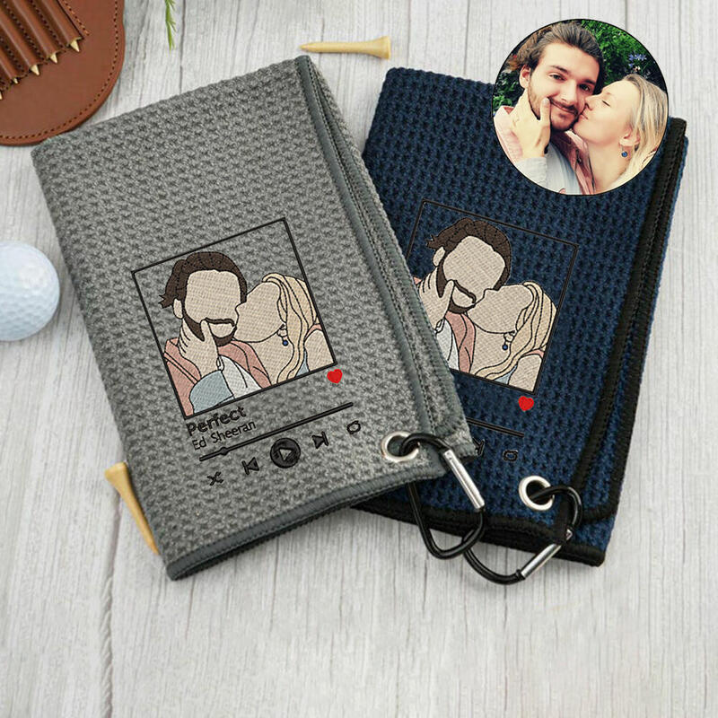 Asciugamano da golf personalizzato Foto di coppia ricamata Regalo per la Festa degli Innamorati per il ragazzo