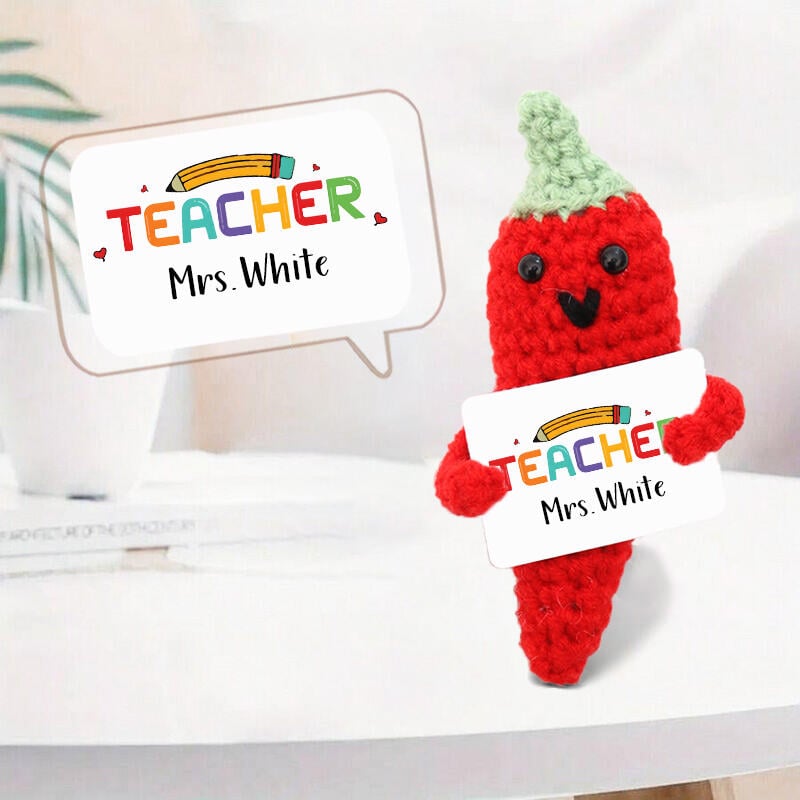 Bambola personalizzata realizzata a mano all'uncinetto con biglietto personalizzato con nome e motivo a matite grazioso regalo per insegnanti