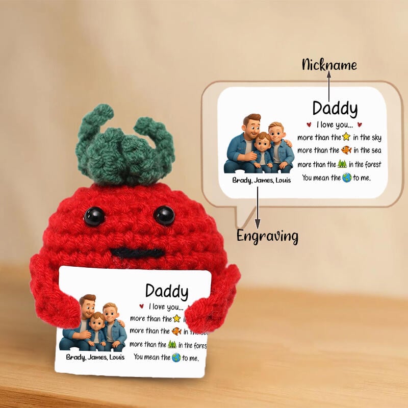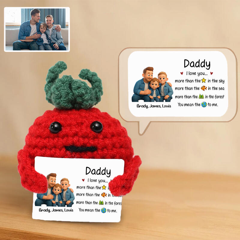 Bambola all'uncinetto personalizzata fatta a mano con biglietto personalizzato e motivo terra Divertente regalo per la festa del papà
