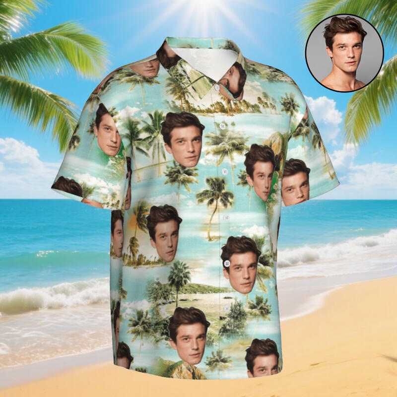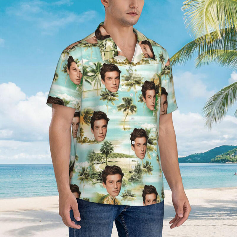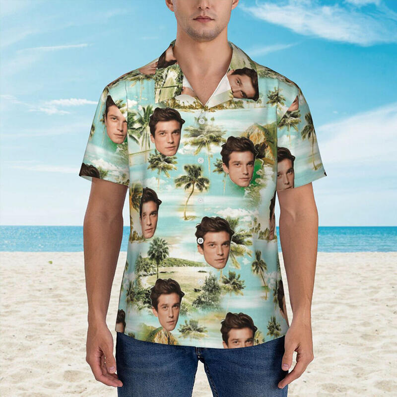 Camicia hawaiana personalizzata con stampa retrò della foresta pluviale e foto personalizzata per uomo