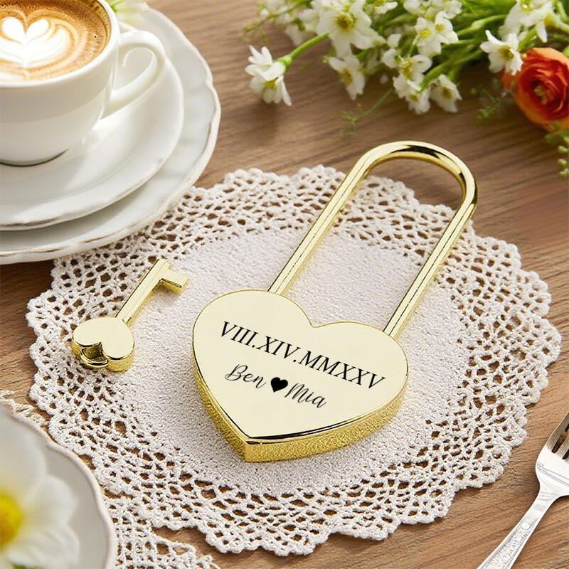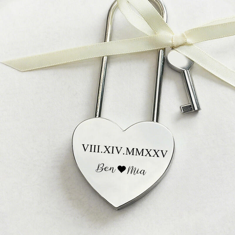 Lucchetto a forma di cuore personalizzato con data in numeri romani e design unico regalo di anniversario per coppie