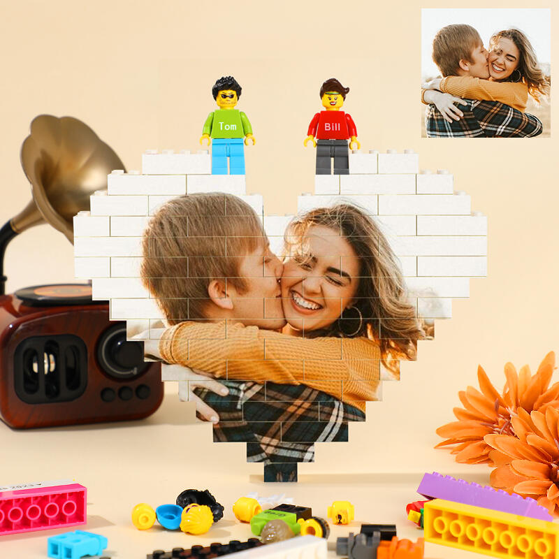 Mattoncini fotografici personalizzati a forma di cuore con minifigure Regalo per San Valentino