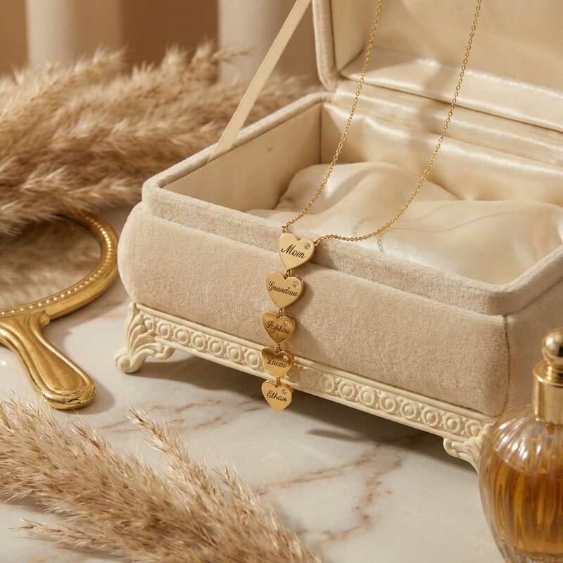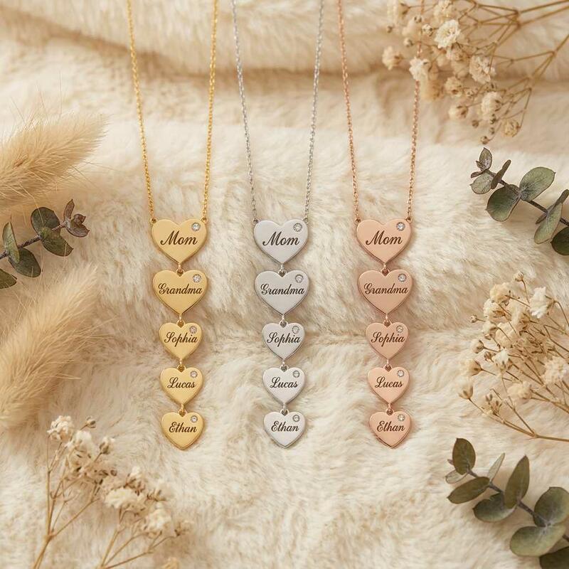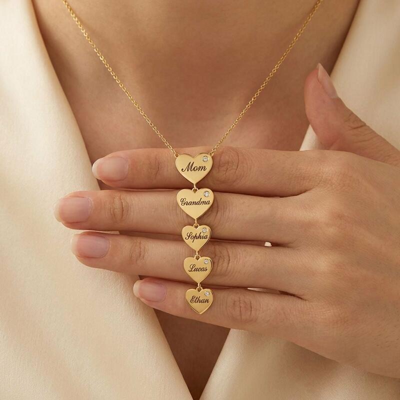 Collane personalizzate con targhetta a forma di cuore personalizzabili con i nomi dei membri della famiglia un regalo divertente per la Festa della Mamma