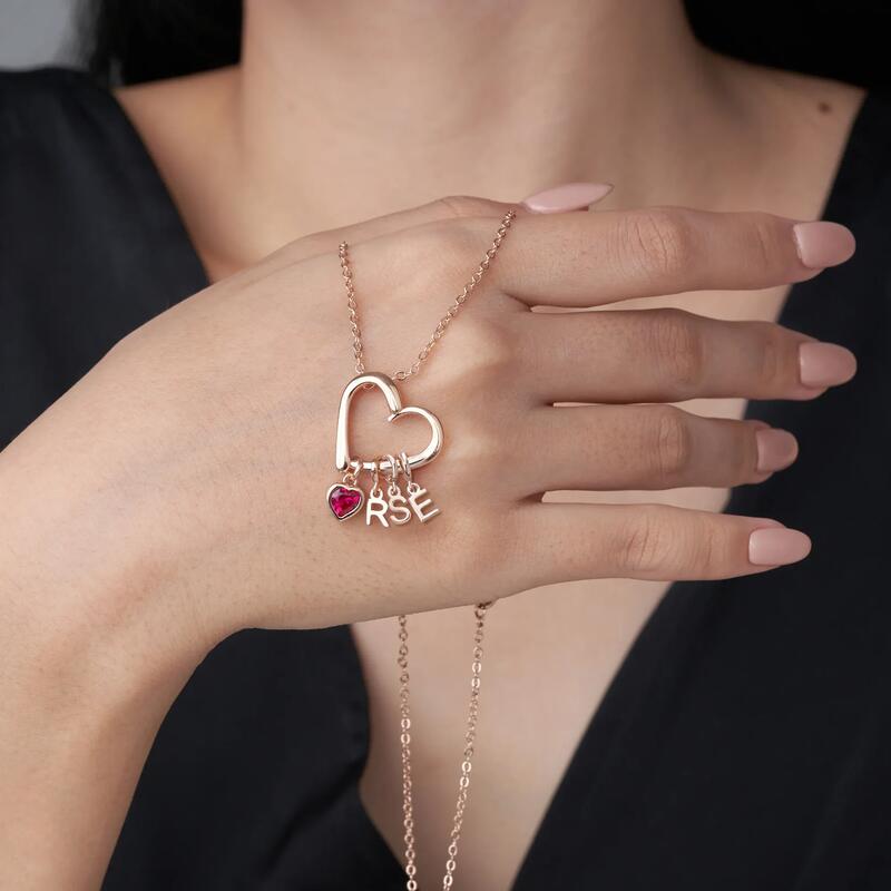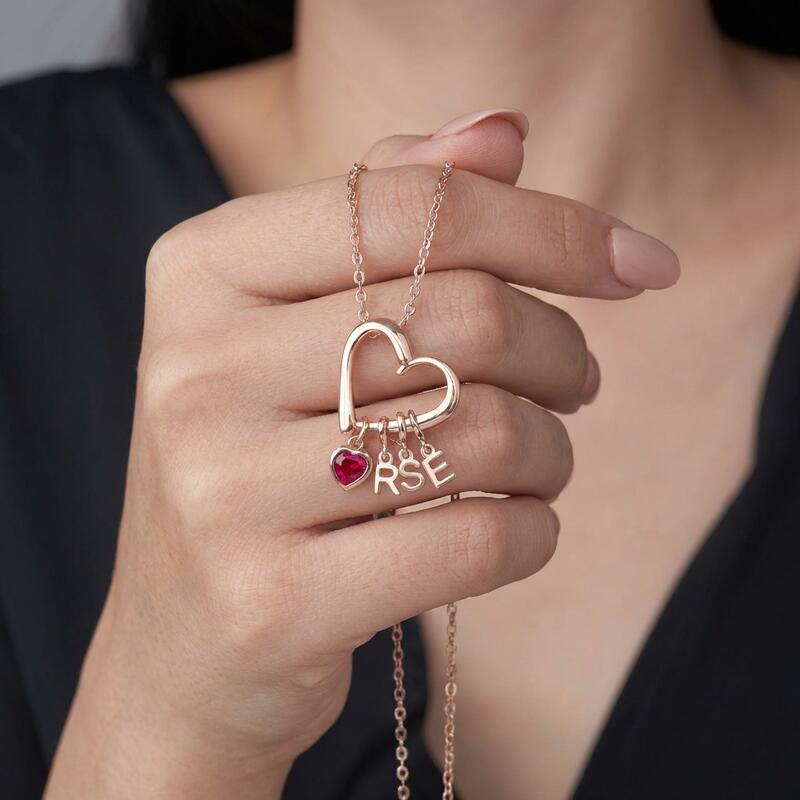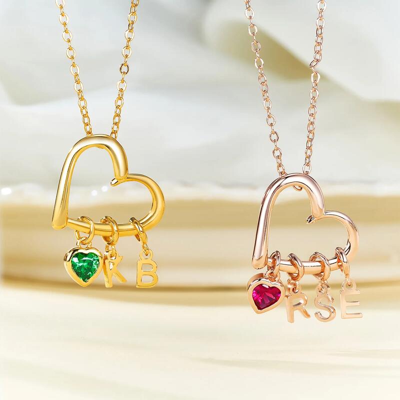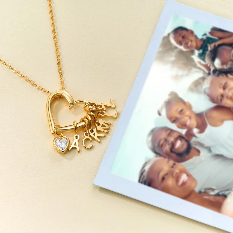 Collana personalizzata a forma di cuore con pietra portafortuna e iniziali Regalo affettuoso per la famiglia
