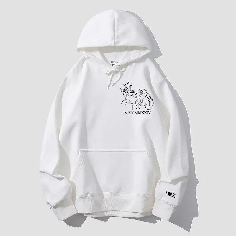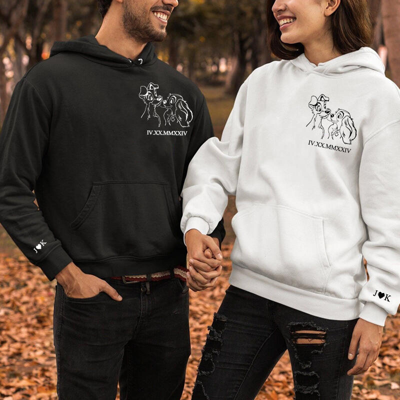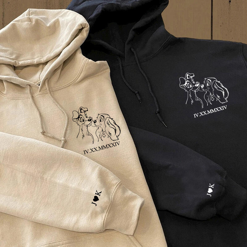 Felpa con cappuccio personalizzata Lady and The Tramp con data numerica romana per anniversario di coppia