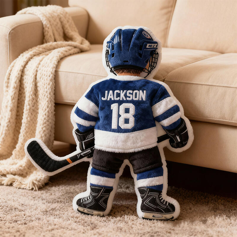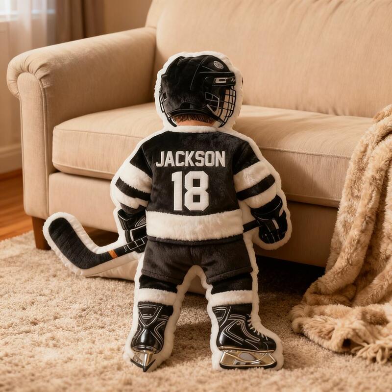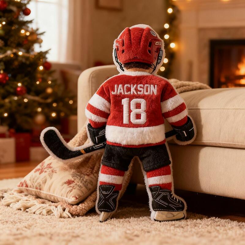 Cuscino personalizzato con giocatore di hockey su ghiaccio Nome e numero personalizzati Regalo di Natale per bambini