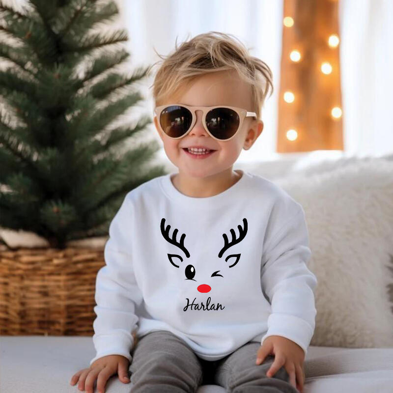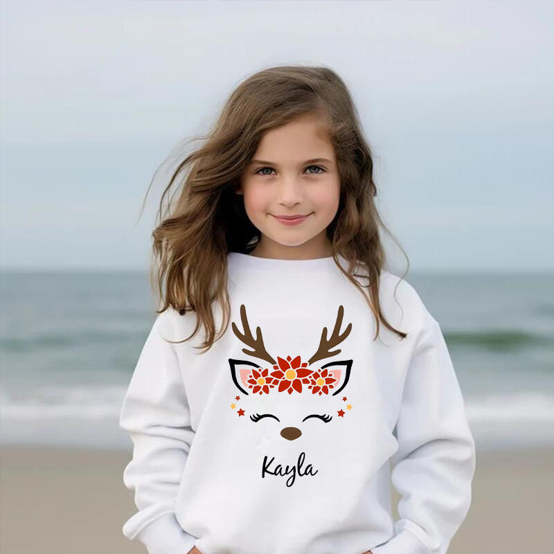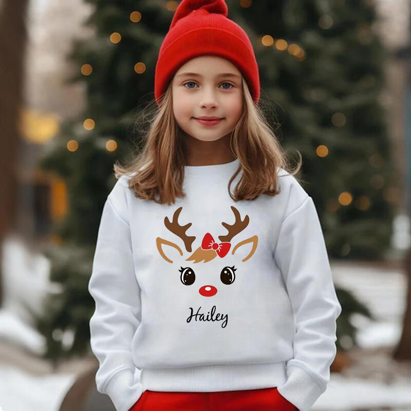 Felpa personalizzata per bambini con motivo della serie Reindeer Head regalo di Natale carino per i bambini