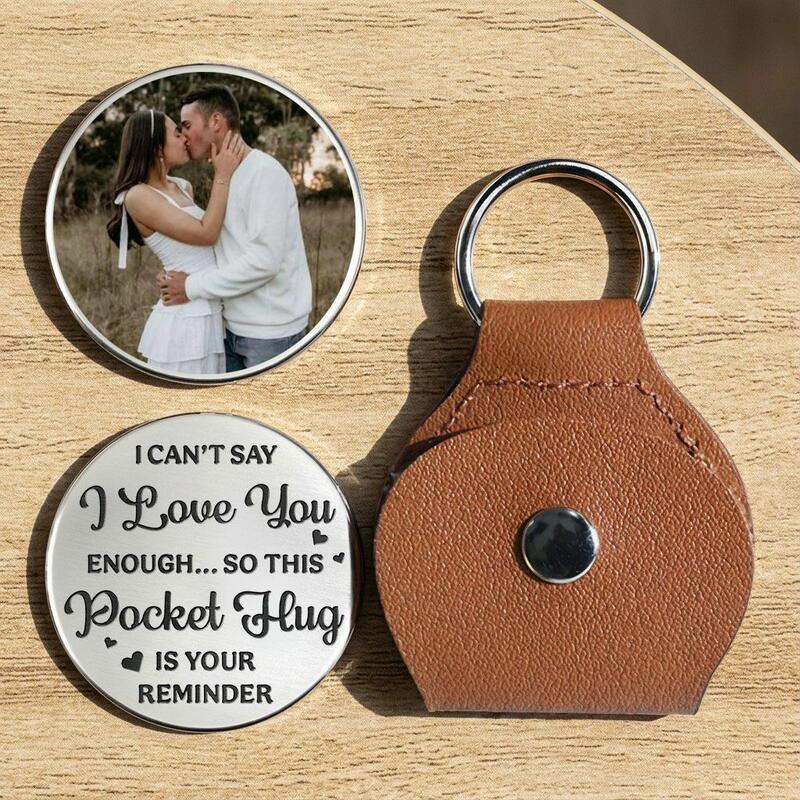 Portachiavi in pelle personalizzato Leather Pocket Hug Regalo a distanza con portachiavi Regalo di San Valentino per lui
