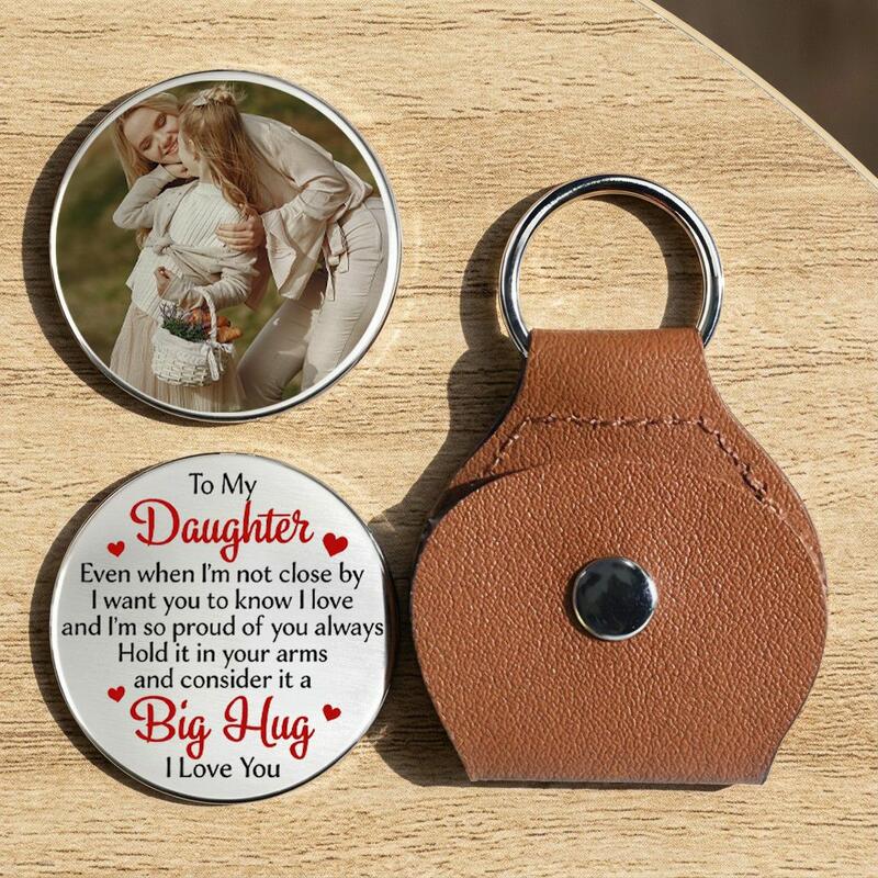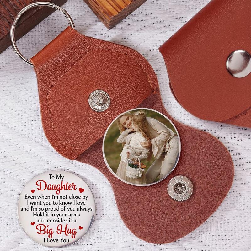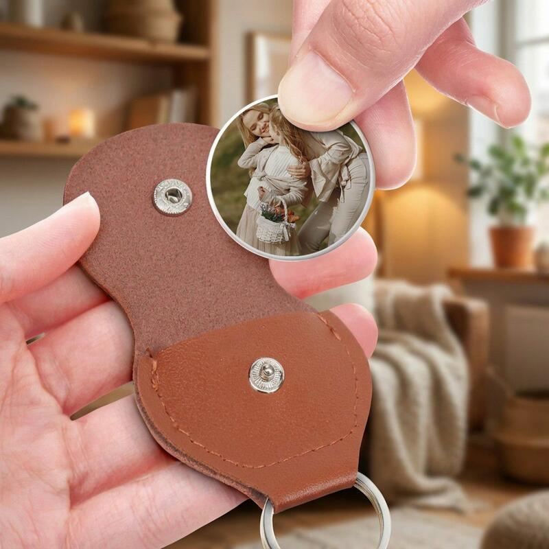 Portachiavi personalizzato in pelle con foto un ricordo che allevia l'ansia per la figlia