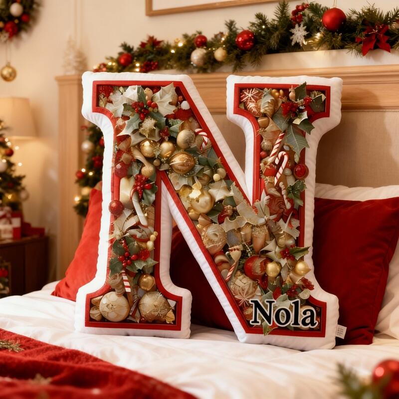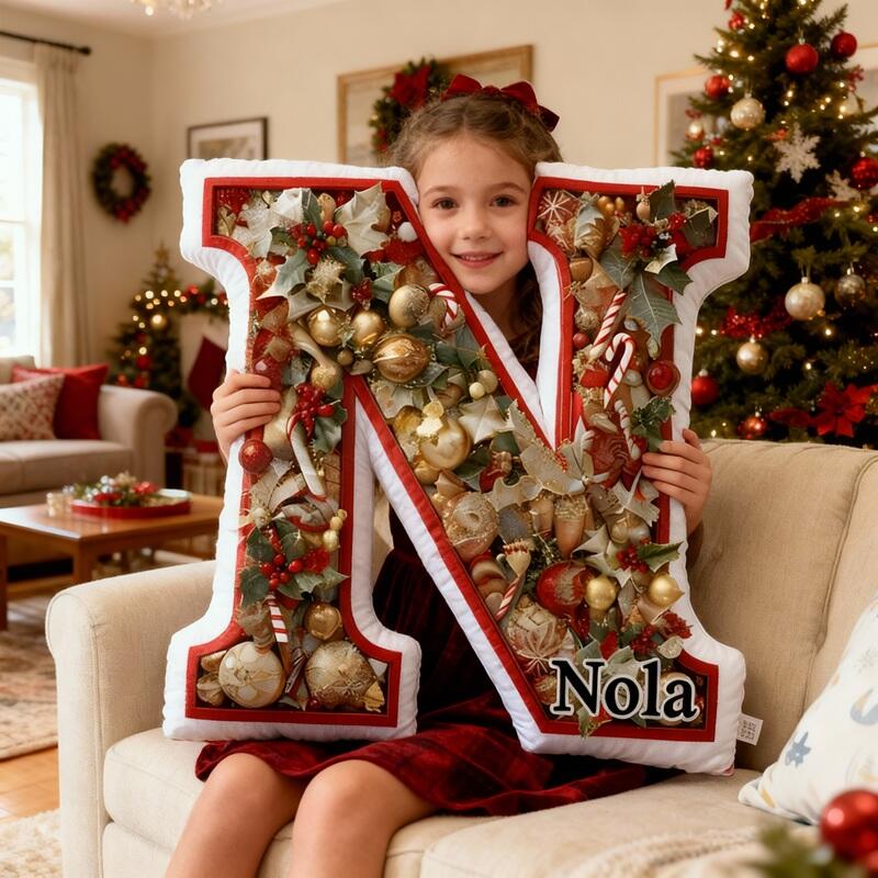 Cuscino personalizzato a forma di lettera con elemento decorativo decorazioni natalizie Regalo elegante per la famiglia