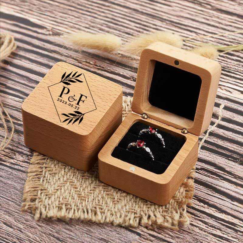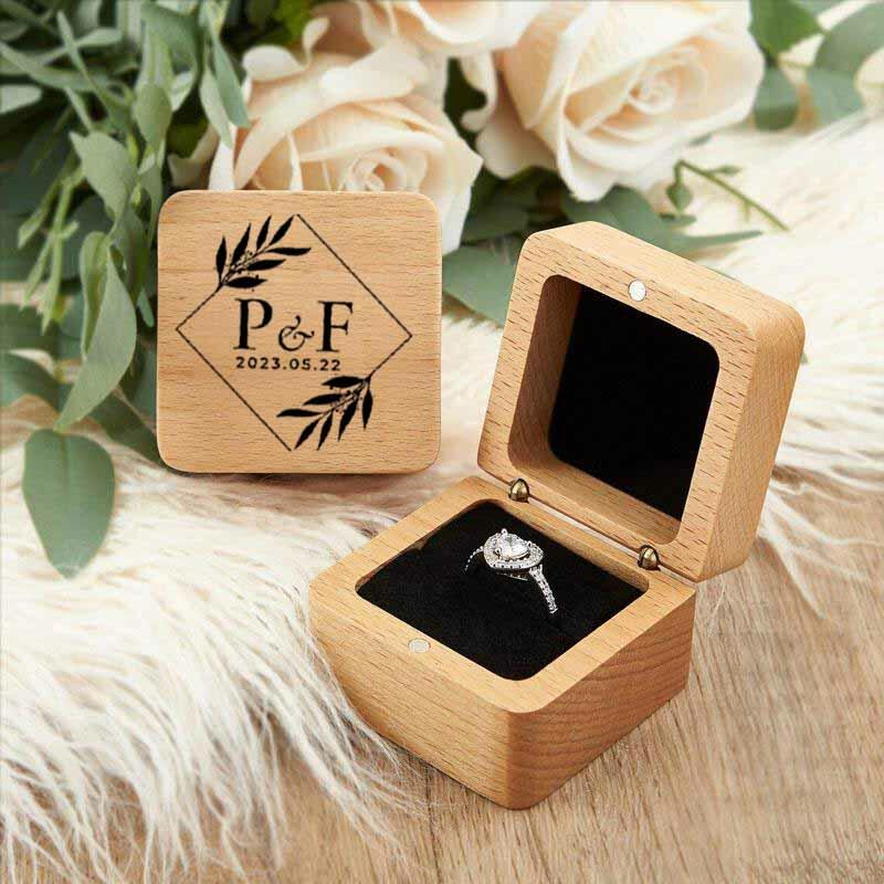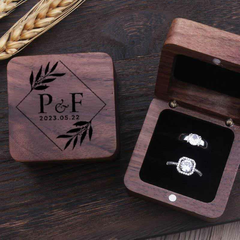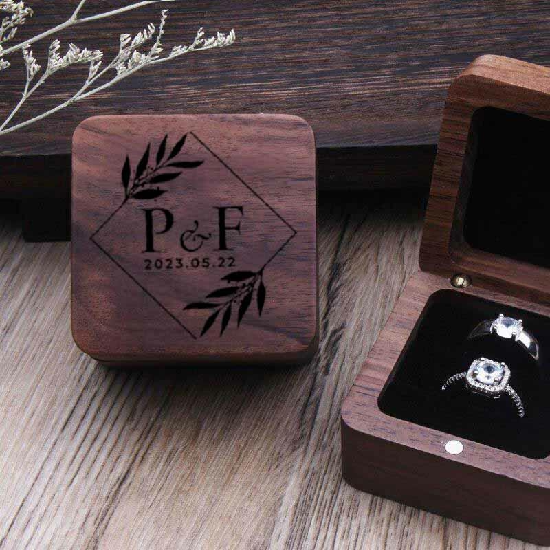 Scatola per anelli in legno con lettere personalizzate e design geometrico Regalo di matrimonio