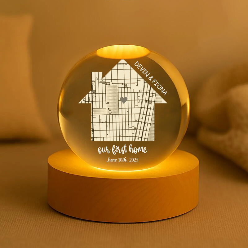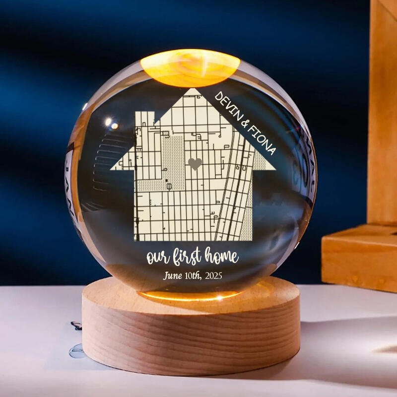 Lampada da notte con mappa personalizzata su sfera di cristallo: un regalo divertente per le coppie innamorate