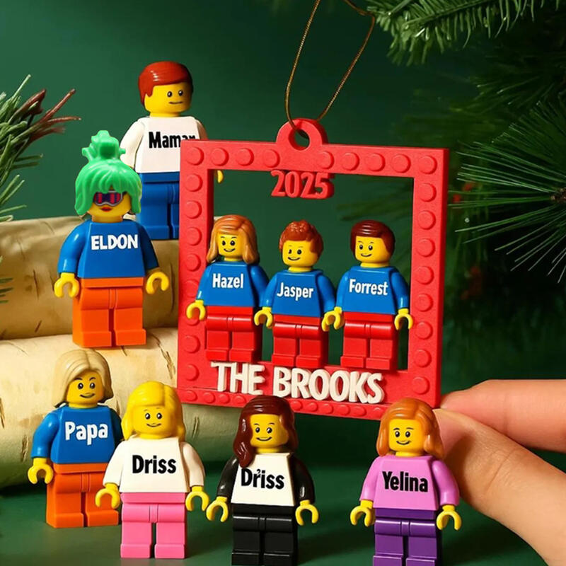 Minifigure personalizzate Decorazioni natalizie con anno e testo personalizzabili Regalo per la famiglia