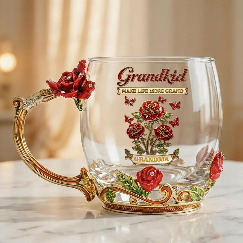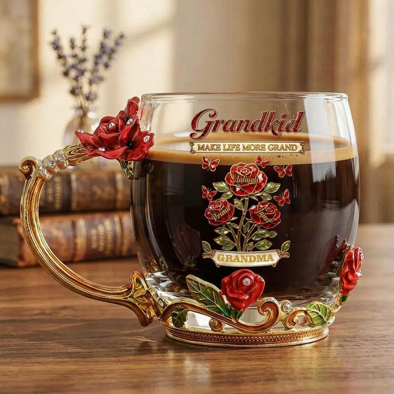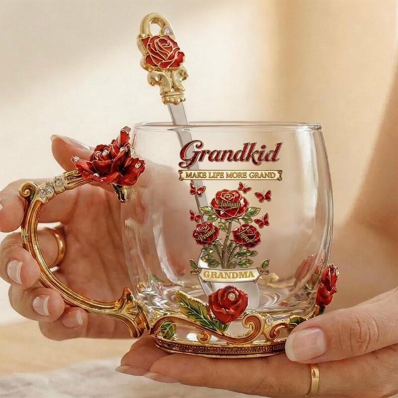 Tazza da tè smaltata personalizzata con nome e disegno di rose Regalo raffinato per la nonna
