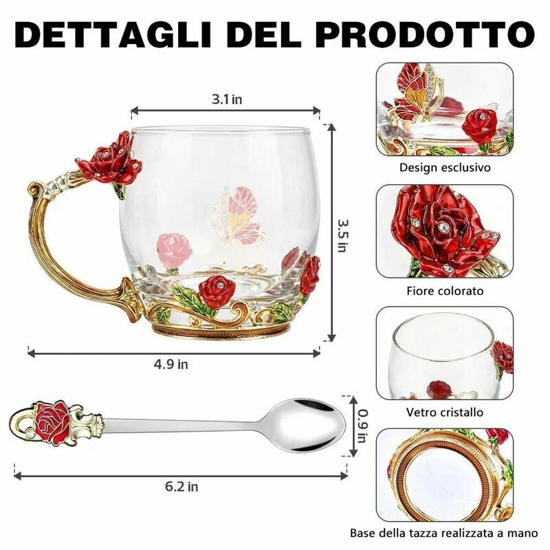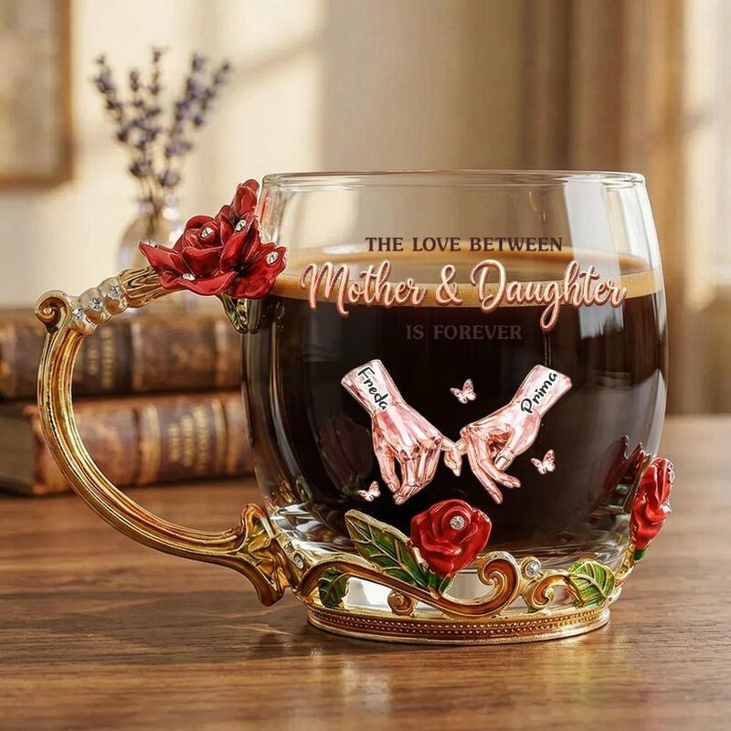 Tazza da tè smaltata con nome personalizzato e motivo di mani che si tengono regalo prezioso per la mamma