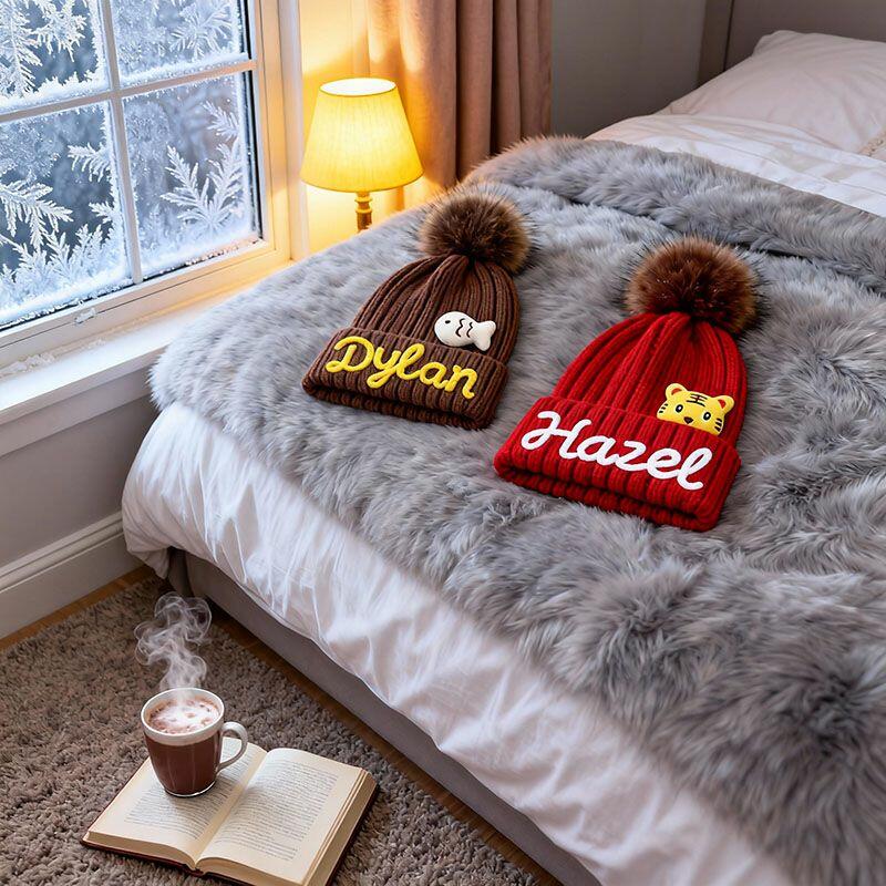 Berretto lavorato a maglia con nome personalizzato e accessori opzionali Prezioso regalo per la mamma