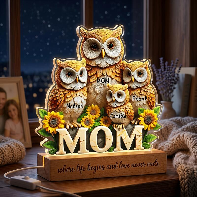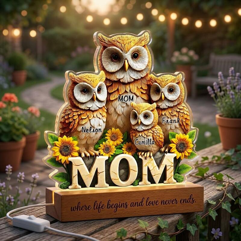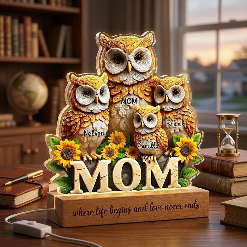 Lampada da notte personalizzata con nome design a forma di gufo regalo significativo per la Festa della Mamma