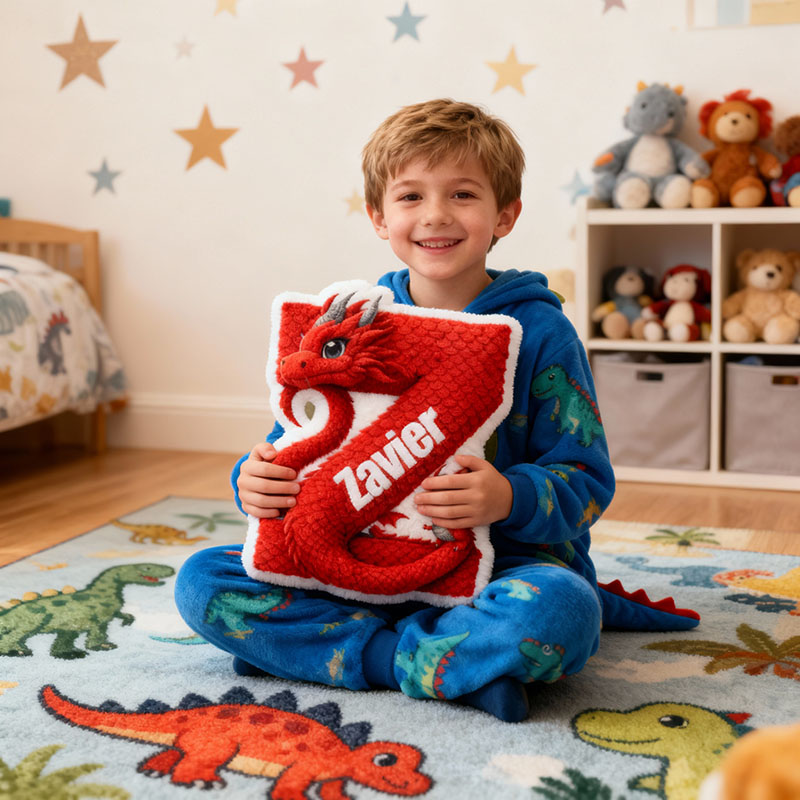 Cuscino personalizzato con nome e disegno drago regalo fantastico per Natale