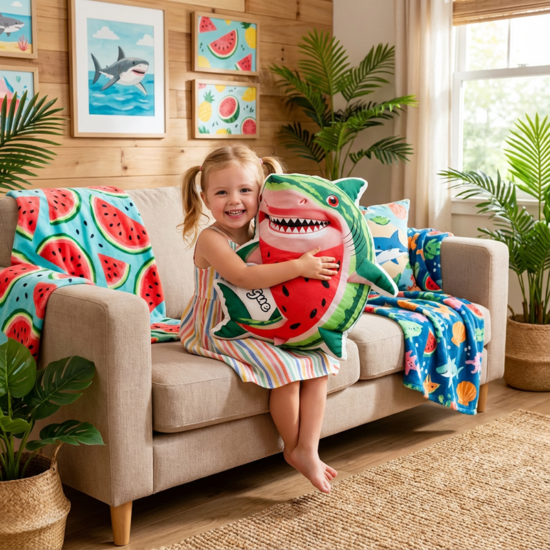 Cuscino personalizzato con nome e disegno di squalo Regalo divertente per bambini