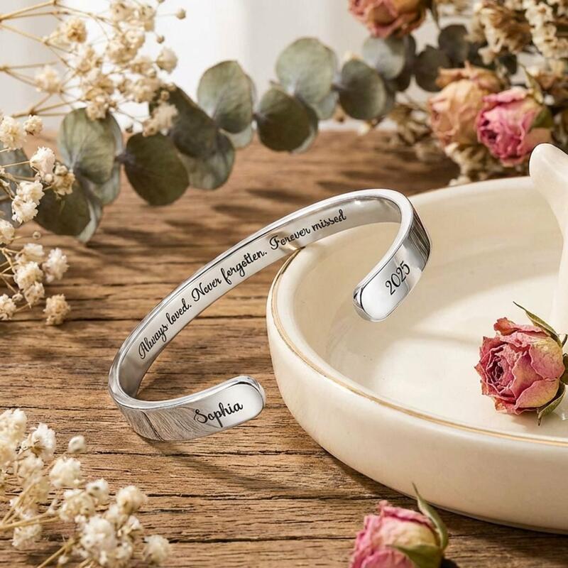 Braccialetto aperto personalizzato con testo personalizzato Regalo commemorativo per la famiglia