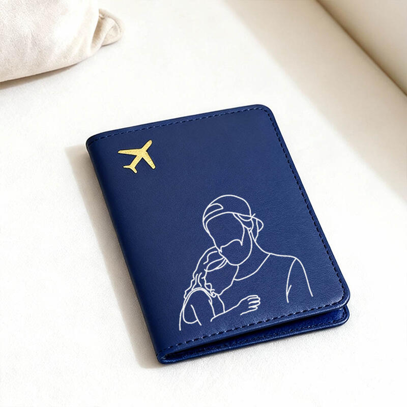 Portapassaporto personalizzato con foto schizzo Portadocumenti da viaggio Regalo per la festa del papà