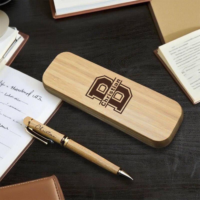 Scatola in legno personalizzata con penna iniziali e nome personalizzati design semplice regalo attraente per gli amici