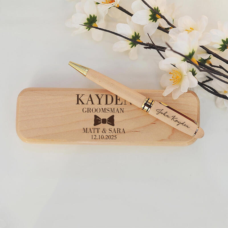 Penna personalizzata in scatola di legno con messaggio personalizzato Design elegante con papillon Regalo di nozze raffinato per gli amici