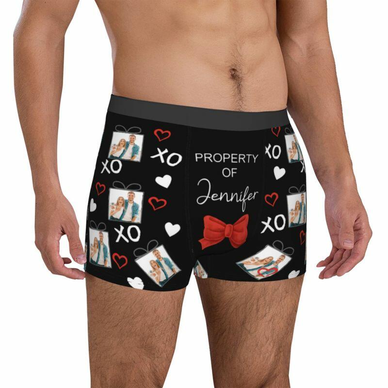 Boxer intimo da uomo con foto personalizzata con motivo a fiocco, regalo romantico per fidanzato