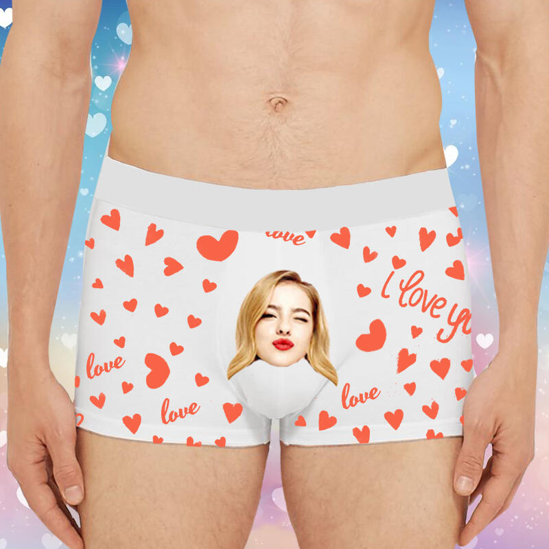 Boxer intimo da uomo con immagine personalizzata e motivo a cuore, regalo speciale per San Valentino