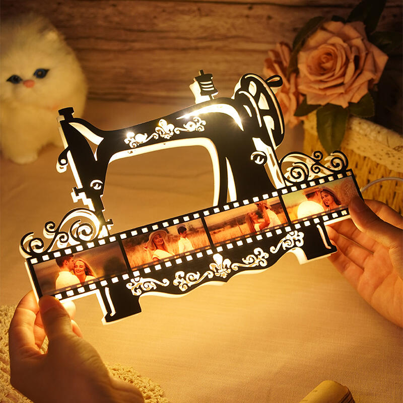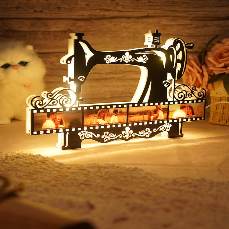 Lampada da notte personalizzata con foto e motivo a forma di macchina da cucire regalo creativo per la moglie