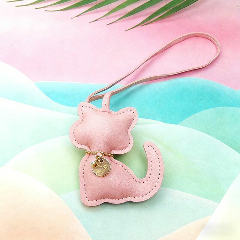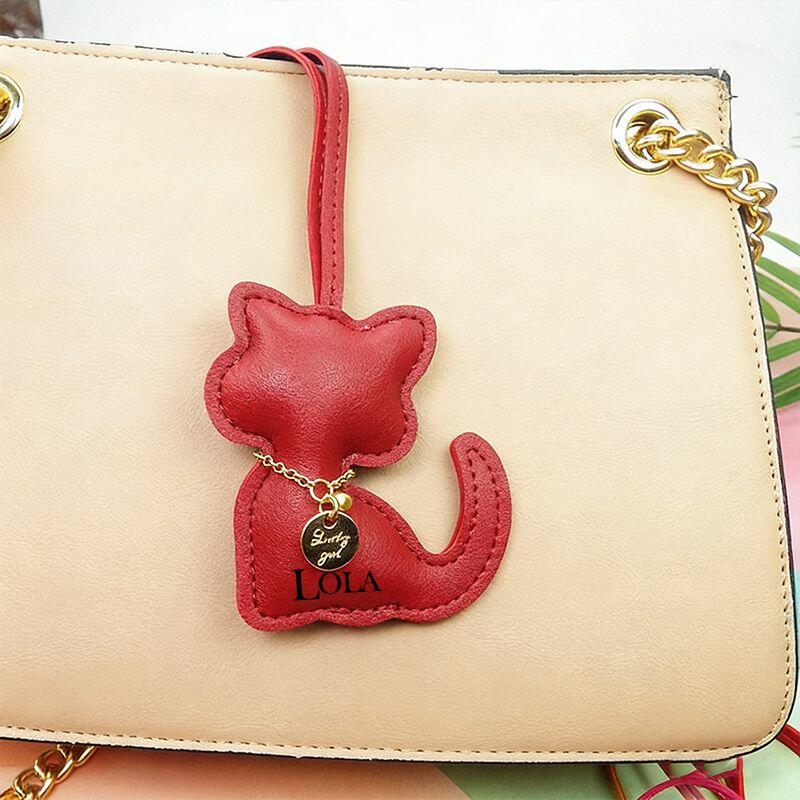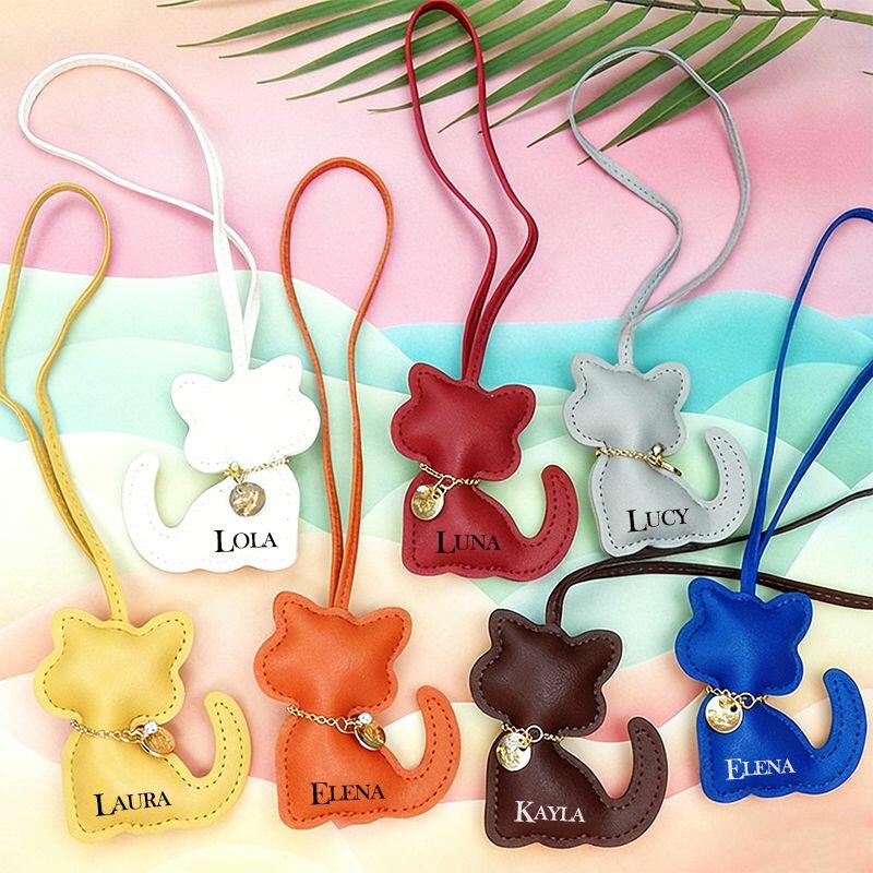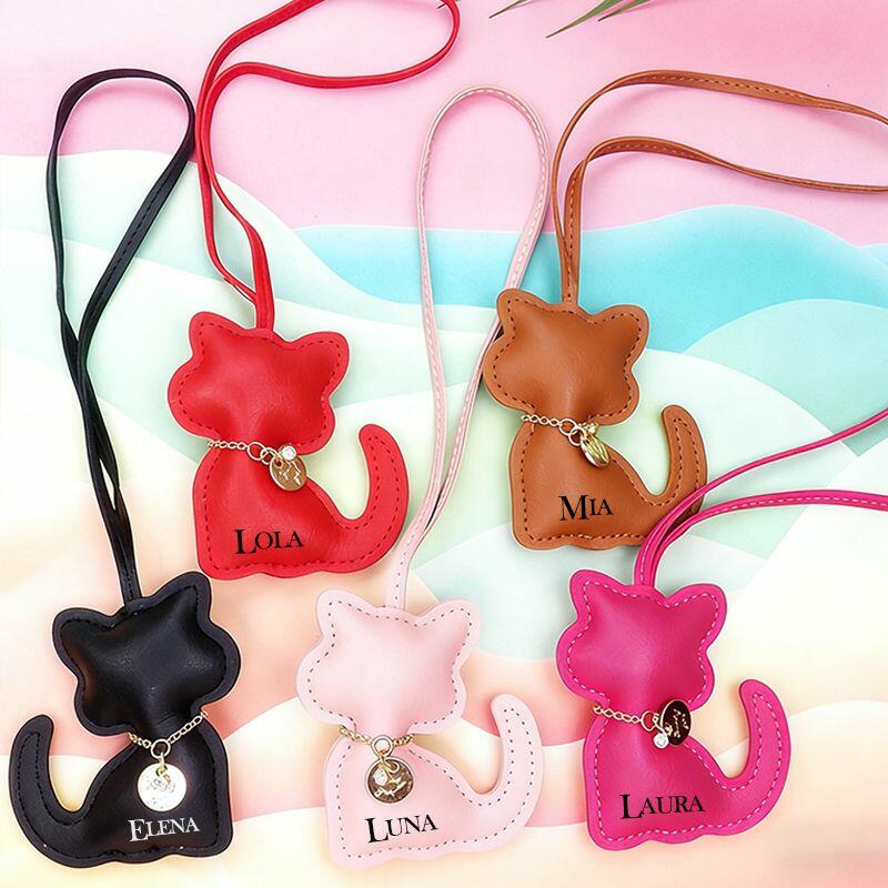 Ciondolo personalizzato in pelle PU per borsa con design gatto carino regalo raffinato per gli amanti degli animali domestici