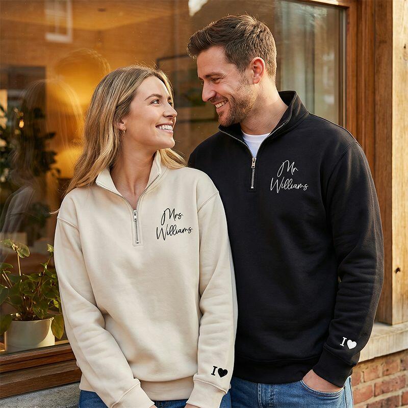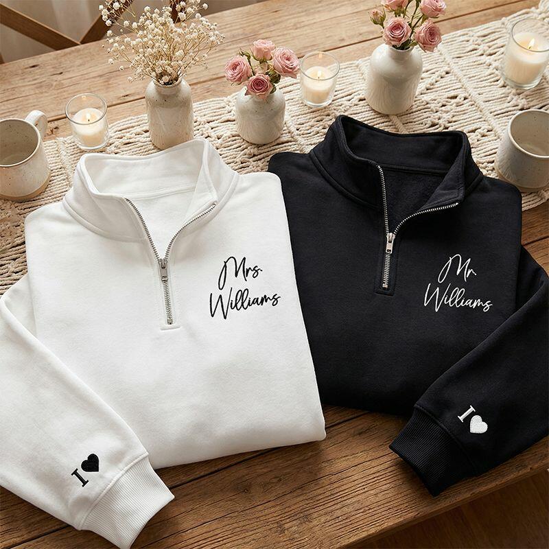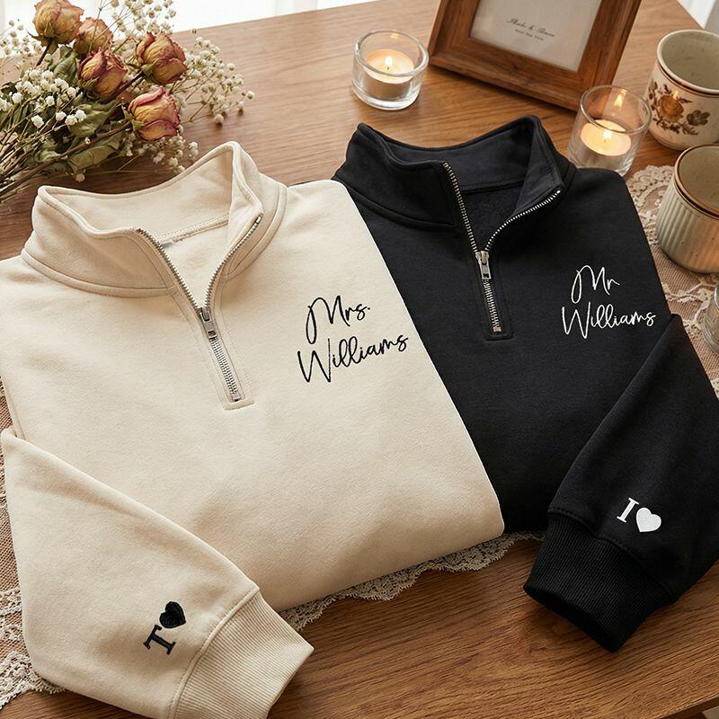 Felpa con zip personalizzata con nome e iniziale ricamati su misura Il regalo perfetto per le coppie
